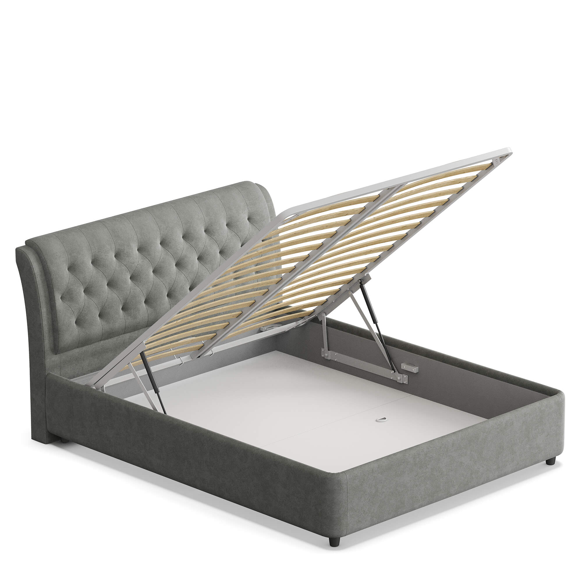 Механизм на газовых лифтах надёжен, безопасен и рассчитан на 25 лет службы. Он плавно и бесшумно поднимает матрас, позволяя открывать ящик без особых усилий.
