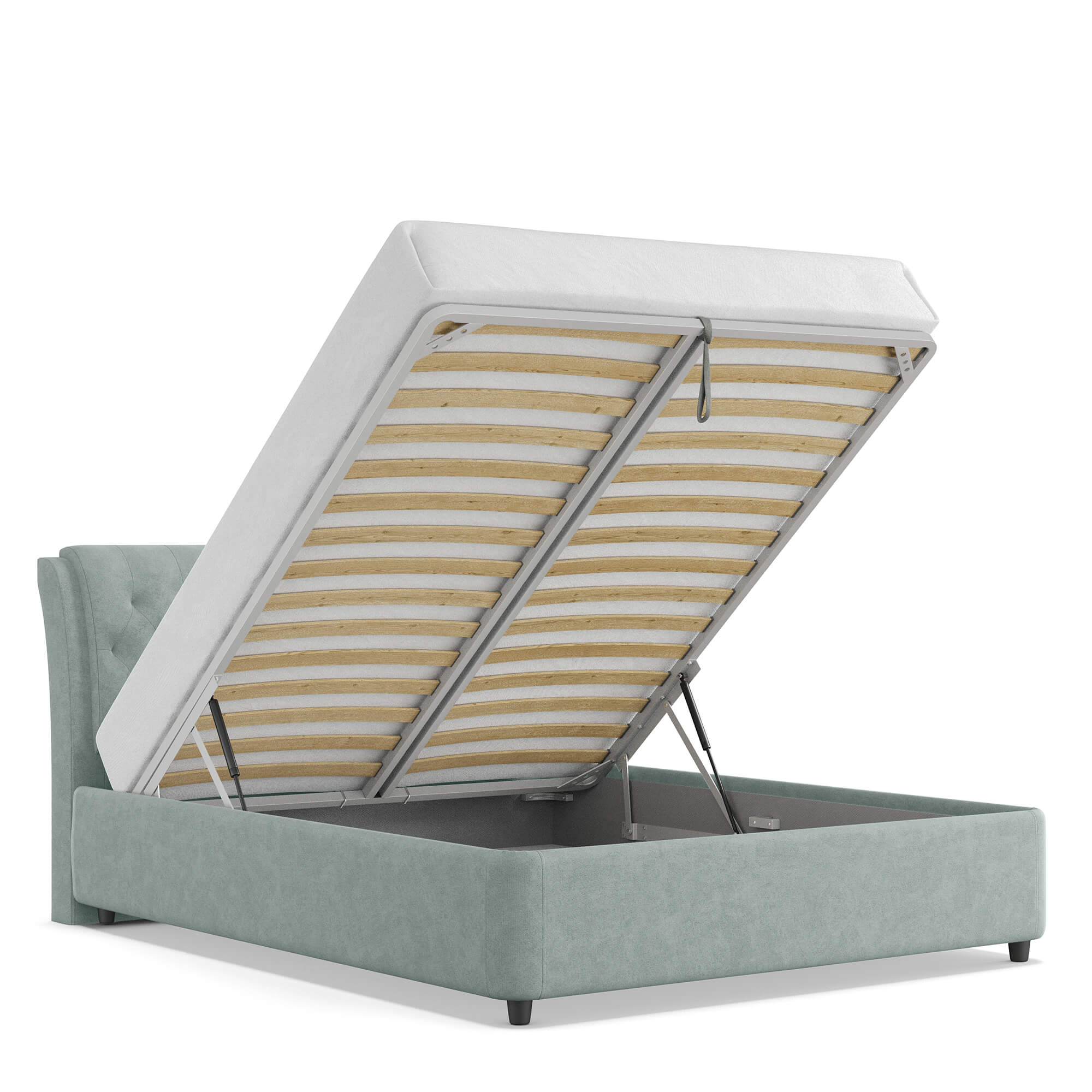 Механизм на газовых лифтах надёжен, безопасен и рассчитан на 25 лет службы. Он плавно и бесшумно поднимает матрас, позволяя открывать ящик без особых усилий.