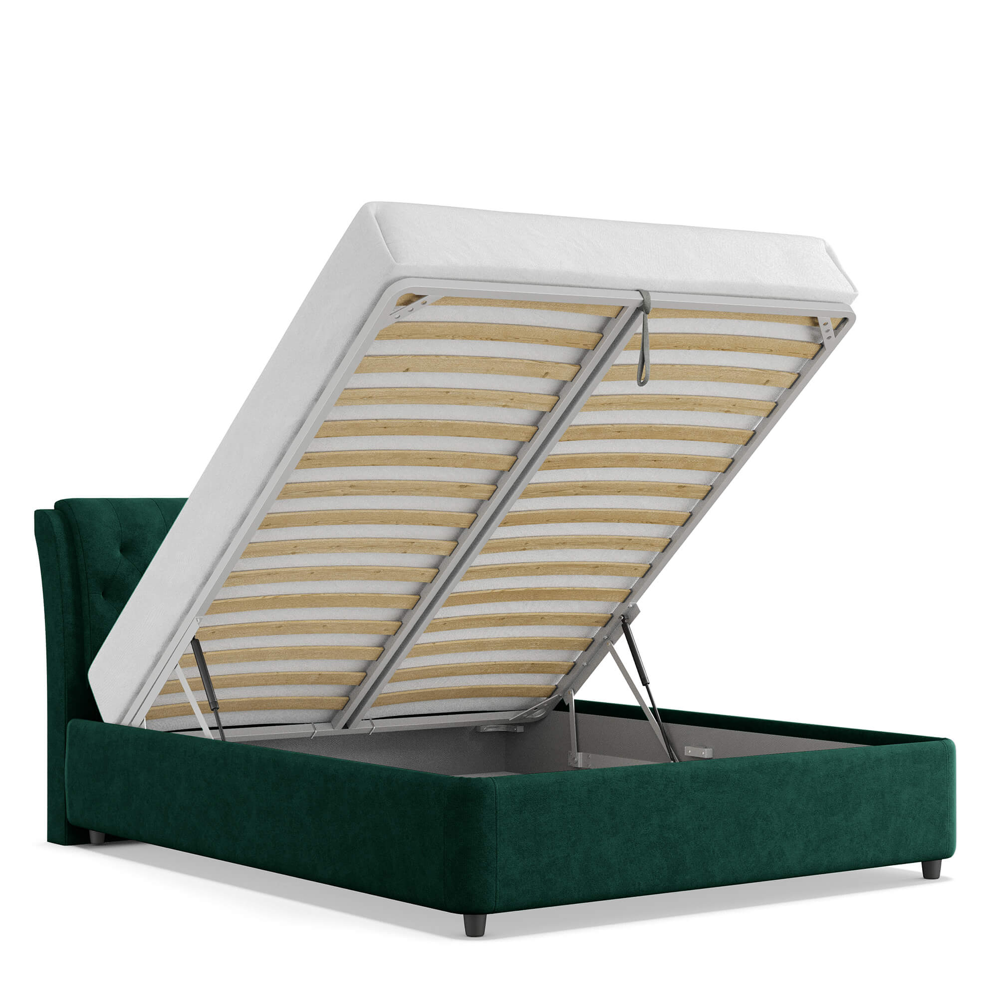 Механизм на газовых лифтах надёжен, безопасен и рассчитан на 25 лет службы. Он плавно и бесшумно поднимает матрас, позволяя открывать ящик без особых усилий.