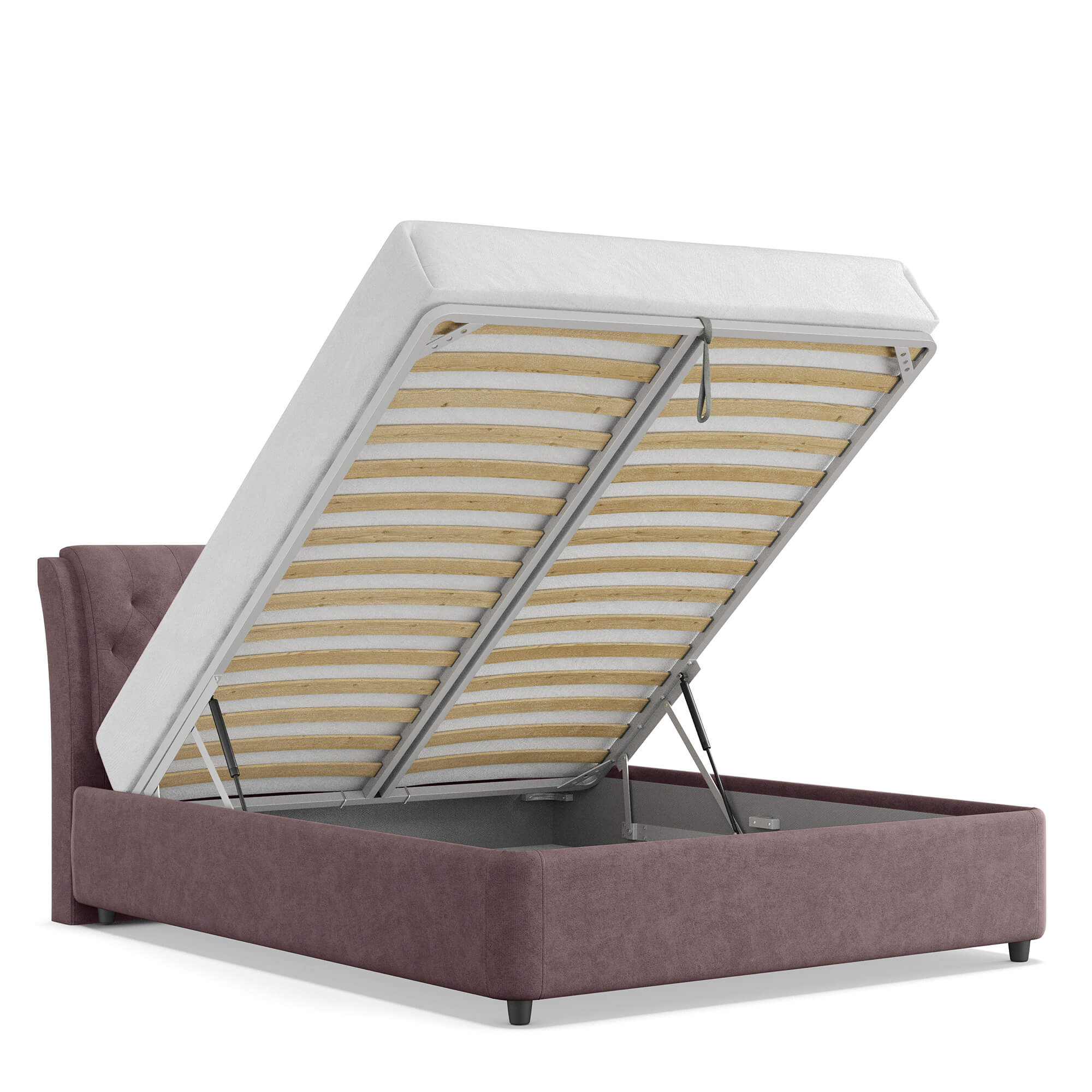 Механизм на газовых лифтах надёжен, безопасен и рассчитан на 25 лет службы. Он плавно и бесшумно поднимает матрас, позволяя открывать ящик без особых усилий.