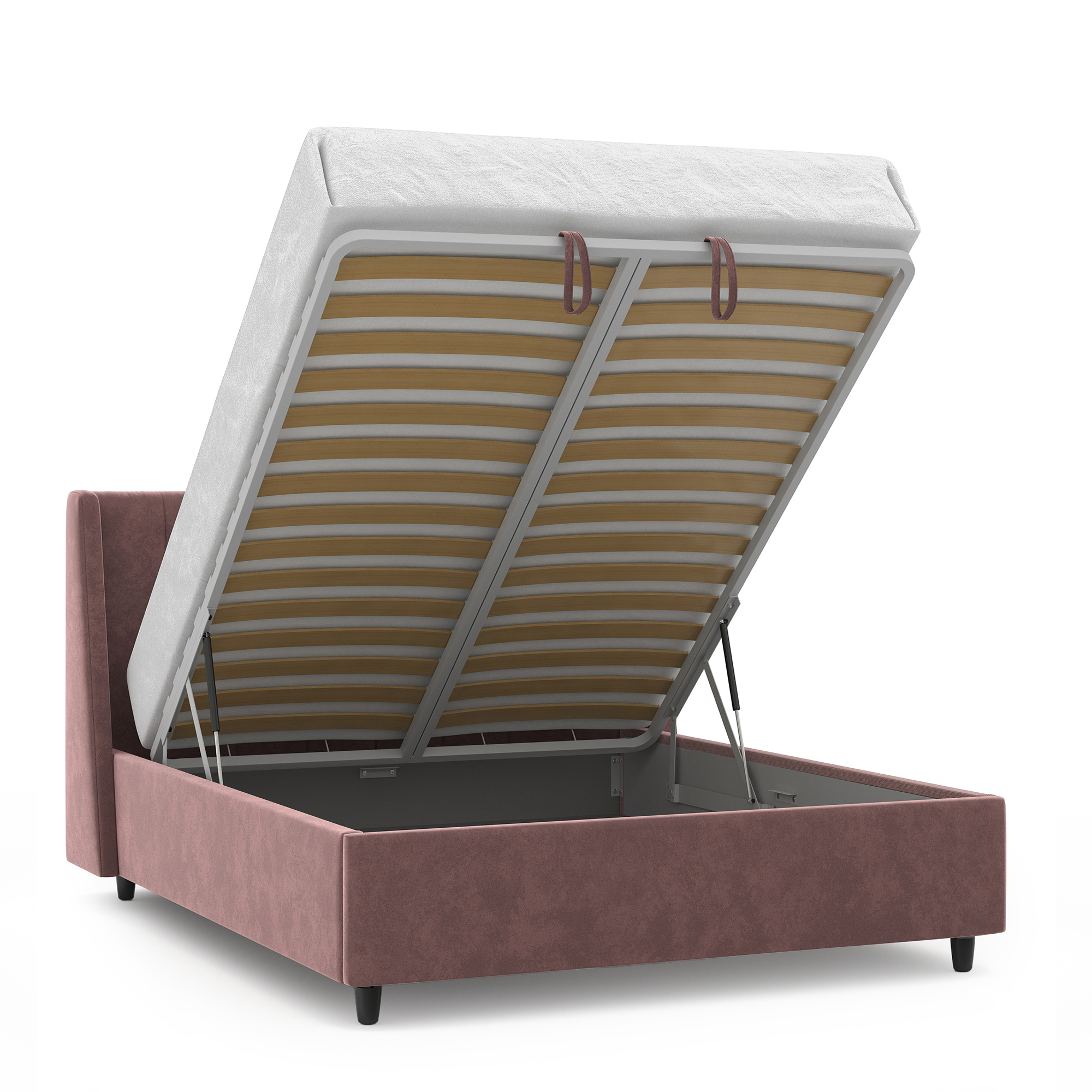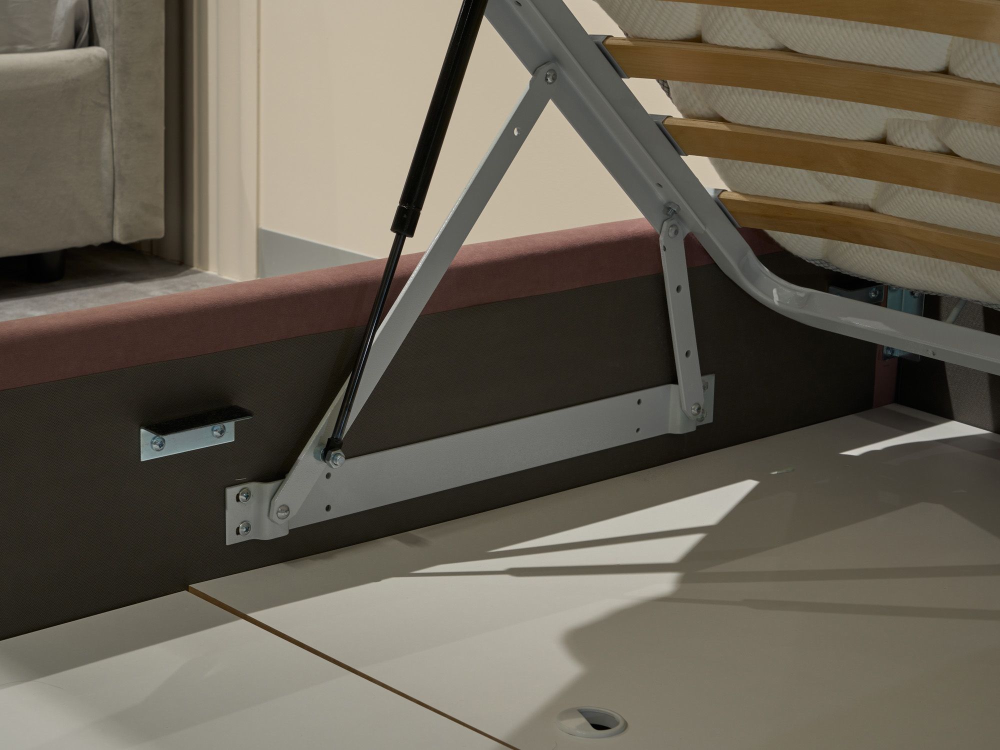 Механизм на газовых лифтах надёжен и безопасен. Он плавно и бесшумно поднимает матрас, позволяя открывать ящик без особых усилий.