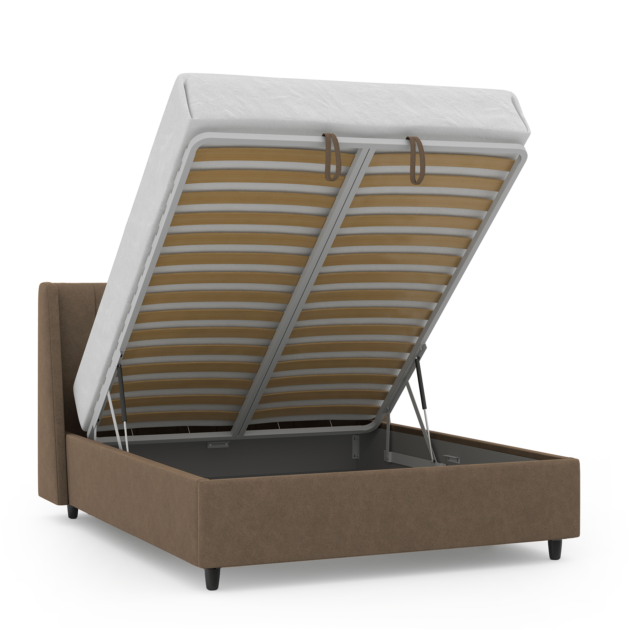 Механизм на газовых лифтах надёжен и безопасен. Он плавно и бесшумно поднимает матрас, позволяя открывать ящик без особых усилий.