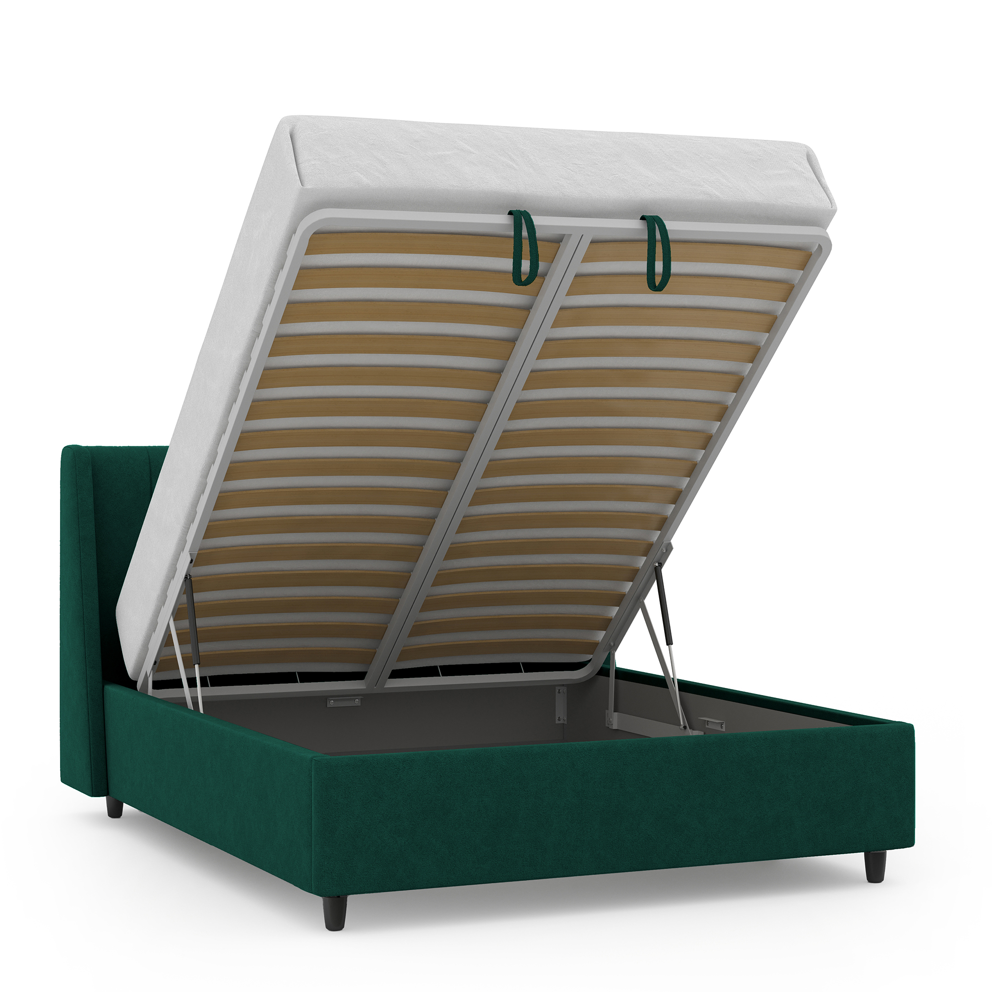 Механизм на газовых лифтах надёжен и безопасен. Он плавно и бесшумно поднимает матрас, позволяя открывать ящик без особых усилий.
