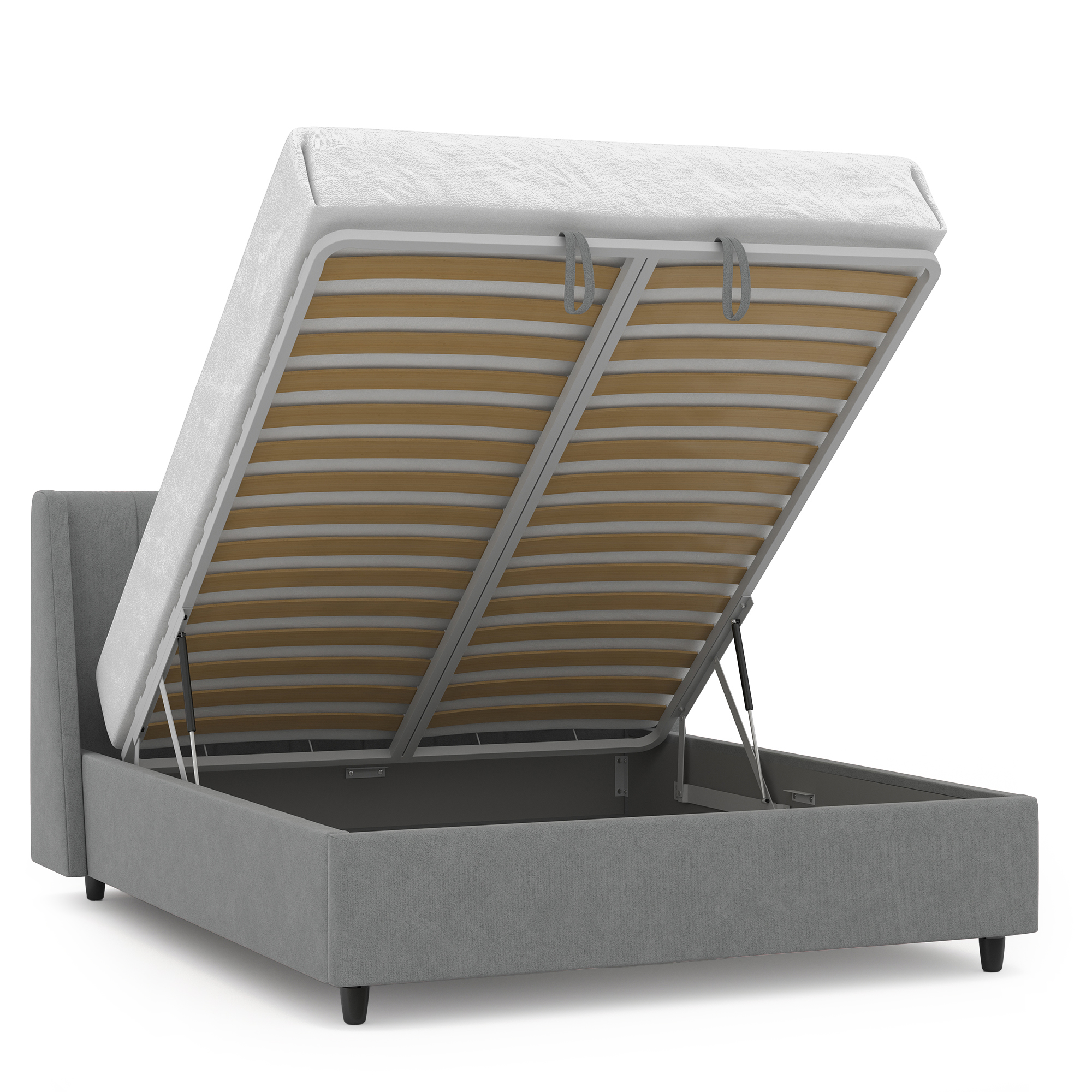 Механизм на газовых лифтах надёжен и безопасен. Он плавно и бесшумно поднимает матрас, позволяя открывать ящик без особых усилий.