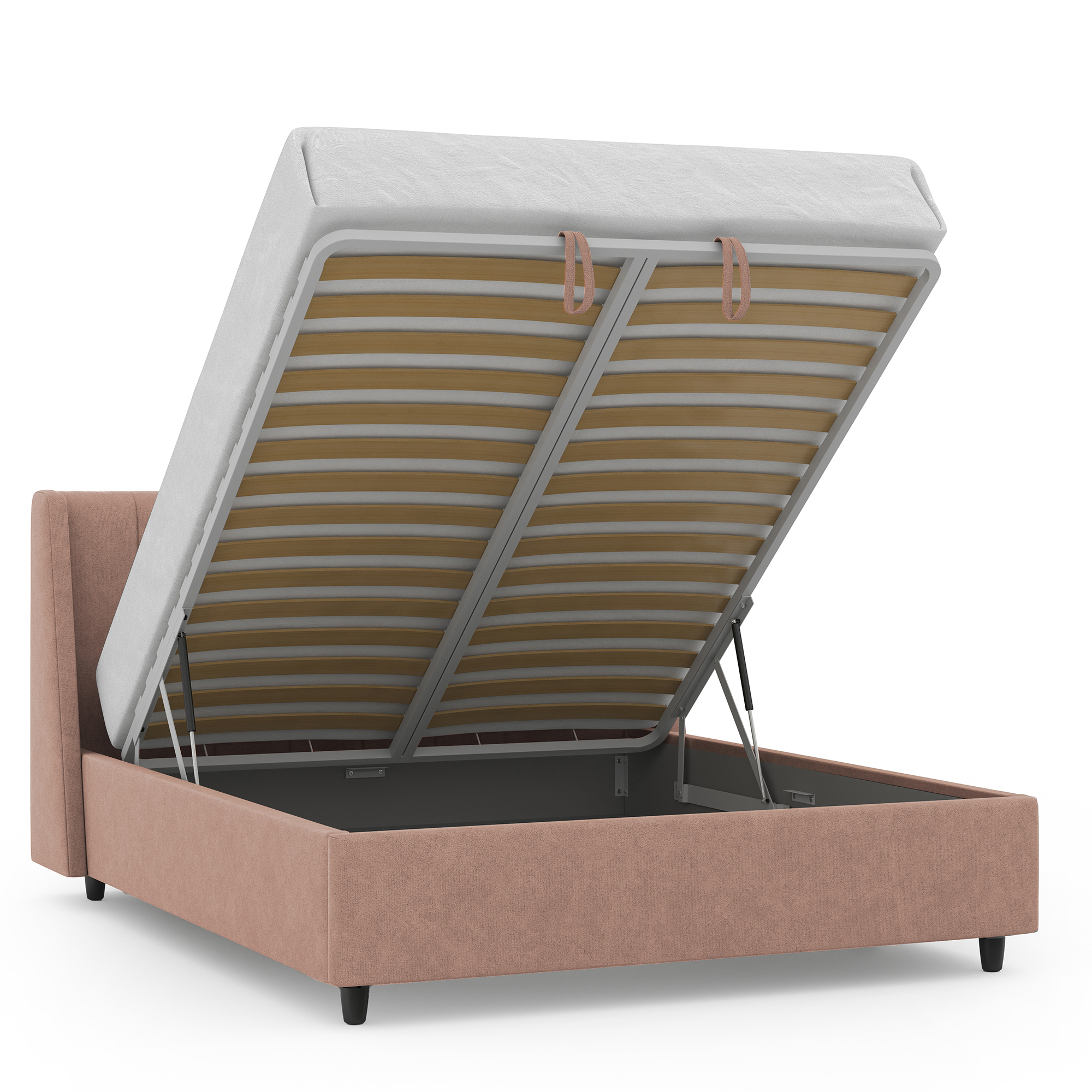 Механизм на газовых лифтах надёжен и безопасен. Он плавно и бесшумно поднимает матрас, позволяя открывать ящик без особых усилий.