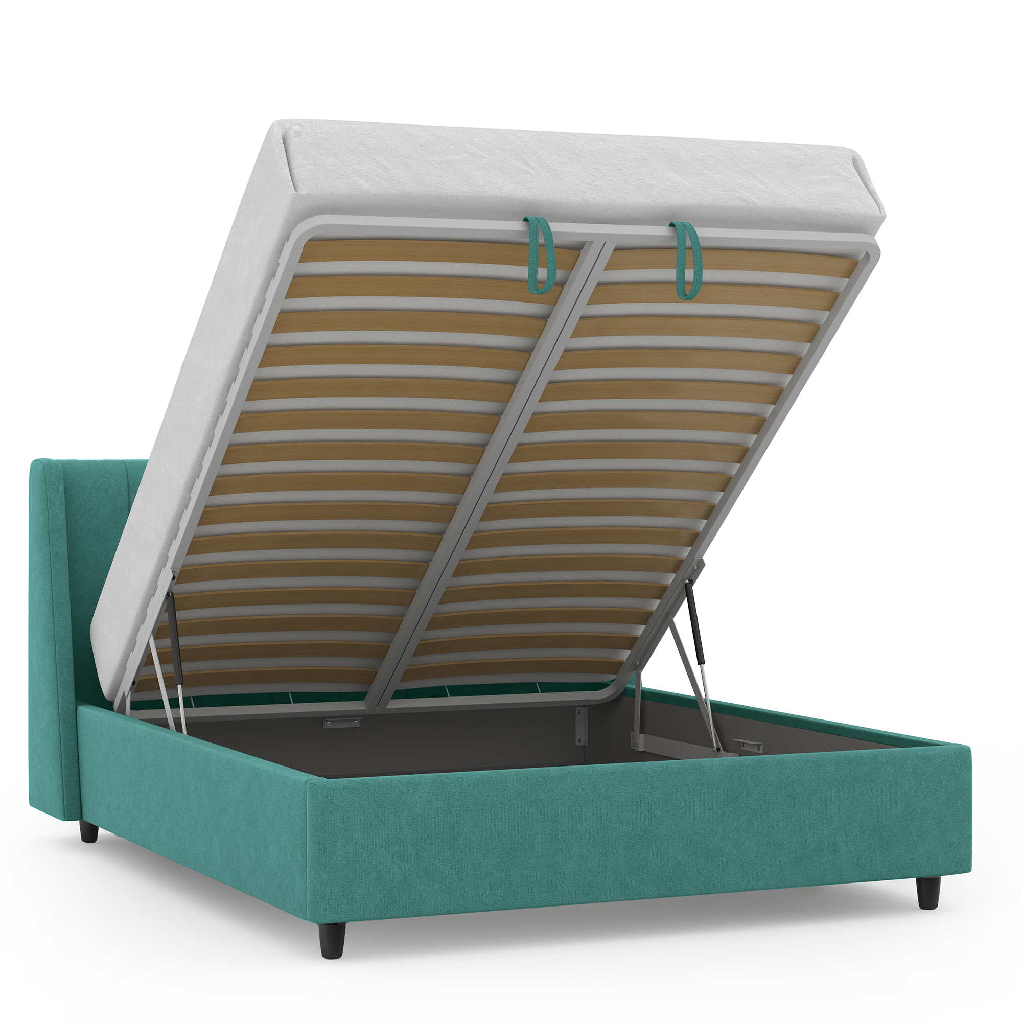 Механизм на газовых лифтах надёжен и безопасен. Он плавно и бесшумно поднимает матрас, позволяя открывать ящик без особых усилий.