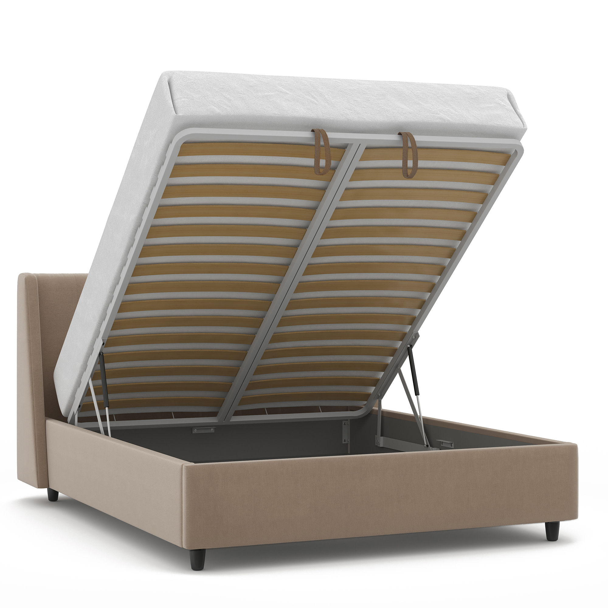 Механизм на газовых лифтах надёжен и безопасен. Он плавно и бесшумно поднимает матрас, позволяя открывать ящик без особых усилий.