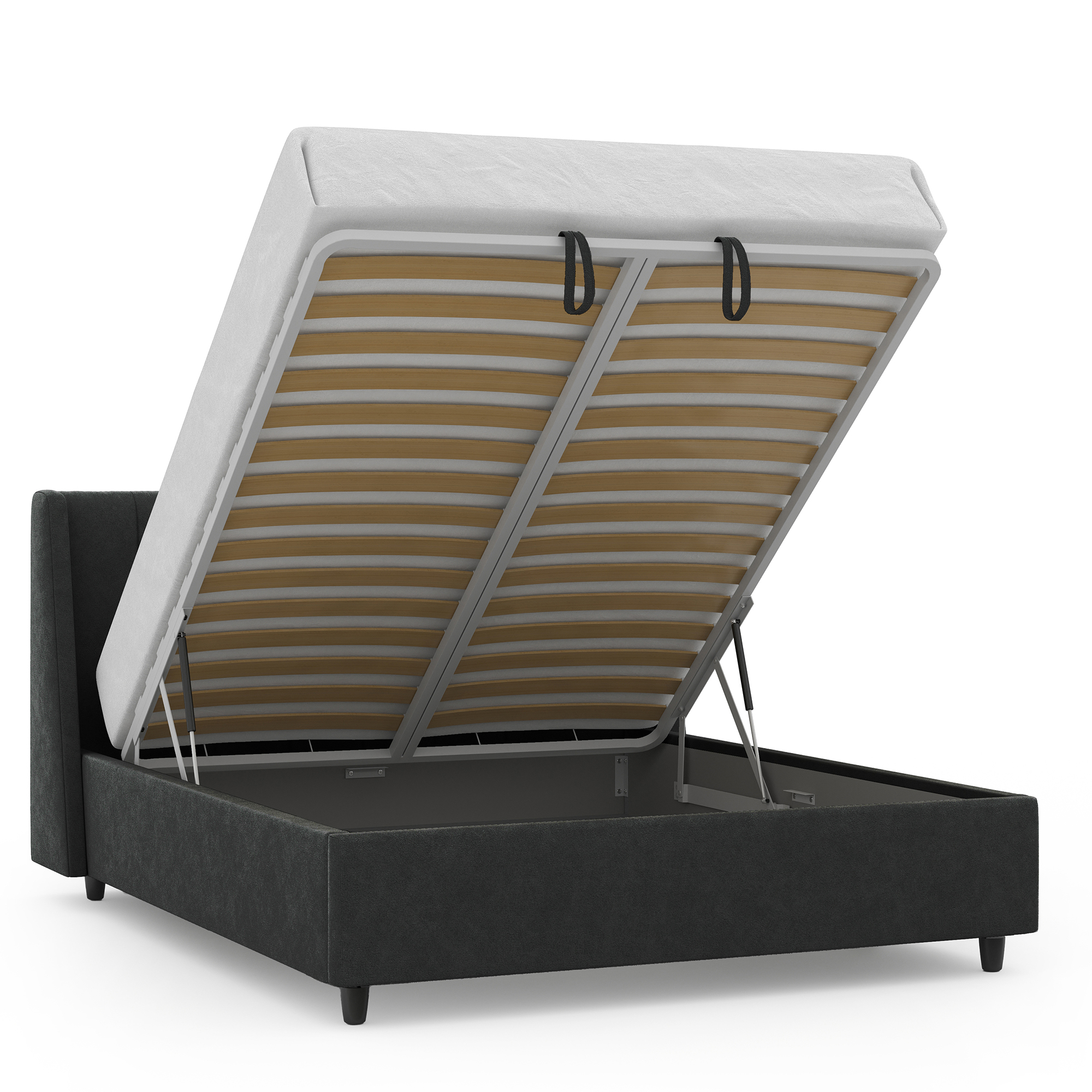 Механизм на газовых лифтах надёжен и безопасен. Он плавно и бесшумно поднимает матрас, позволяя открывать ящик без особых усилий.