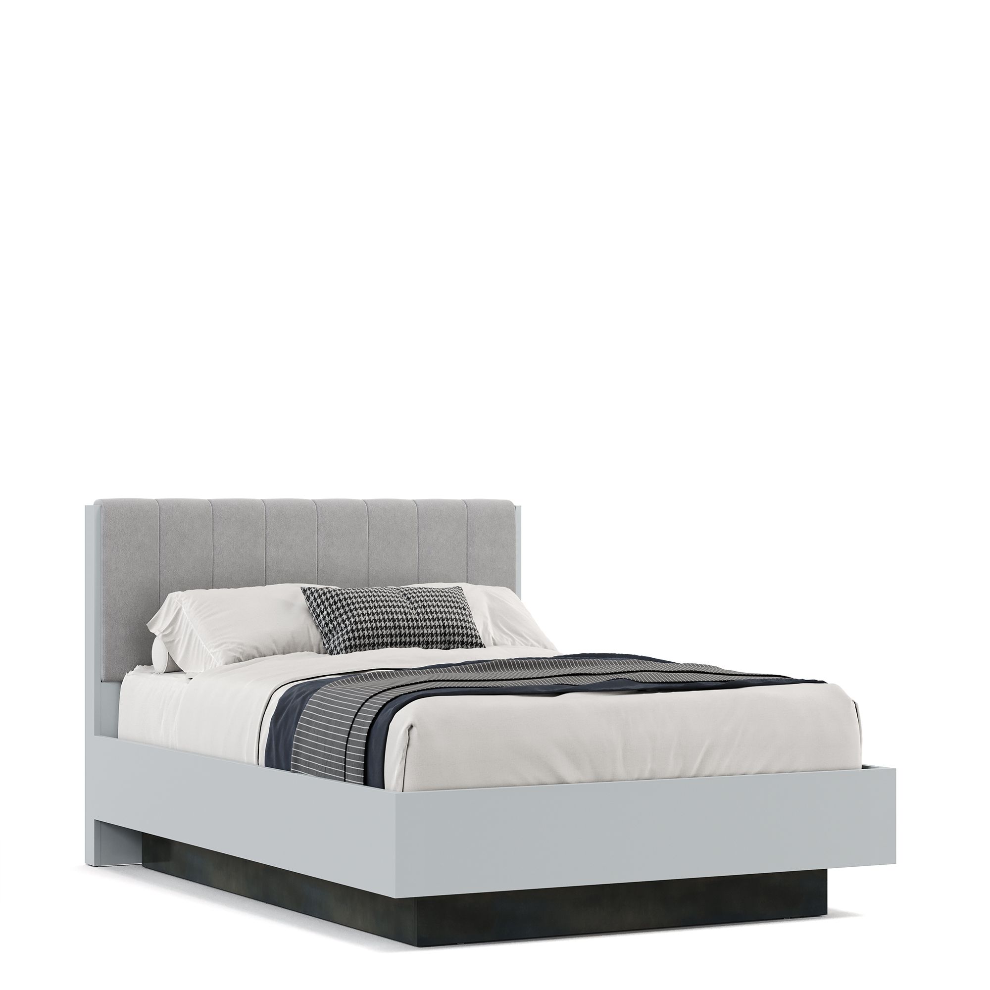 Кровать NAPOLI оснащена высокой головной спинкой в отделке велюром, декорированной вертикальной прострочкой. Ортопедическая решетка с подъемным механизмом входит в комплектацию. Конструкция решетки представляет собой металлический каркас, на котором с шагом 30 мм закреплены 56 ламелей с дополнительной амортизацией).