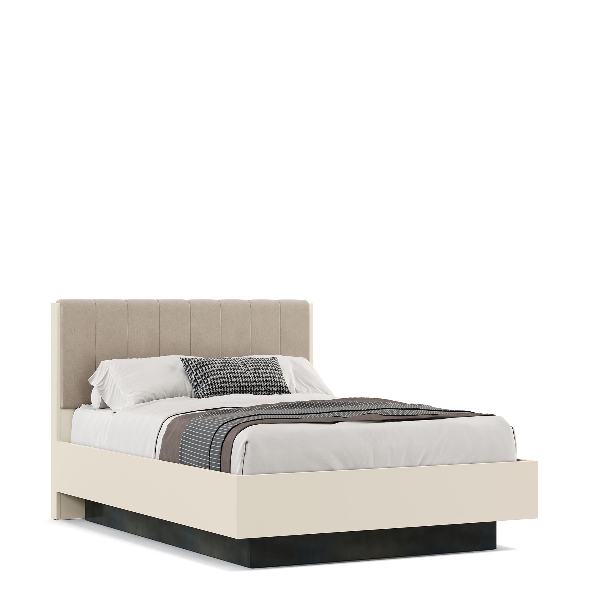 Кровать NAPOLI оснащена высокой головной спинкой в отделке велюром, декорированной вертикальной прострочкой. Ортопедическая решетка с подъемным механизмом входит в комплектацию. Конструкция решетки представляет собой металлический каркас, на котором с шагом 30 мм закреплены 56 ламелей с дополнительной амортизацией).