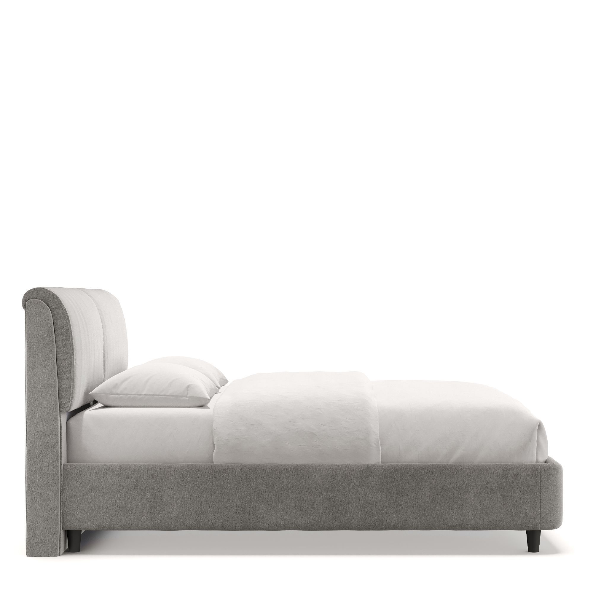 Благодаря мягкому наполнителю изголовья любители чтения перед сном и сериалов могут расположиться с комфортом. Изголовье разделено на аккуратные квадраты, плавно обволакивающие спинку, что придаёт кровати современный и элегантный вид. Это дизайнерское решение не только добавляет визуального интереса, но и подчёркивает внимание к деталям в дизайне. Обивка кровати специально разработана по заказу бренда «Дятьково Design». Оборотная сторона спинки выполнена в обивочной ткани, что позволяет ставить кровать в центре комнаты и зонировать пространство.