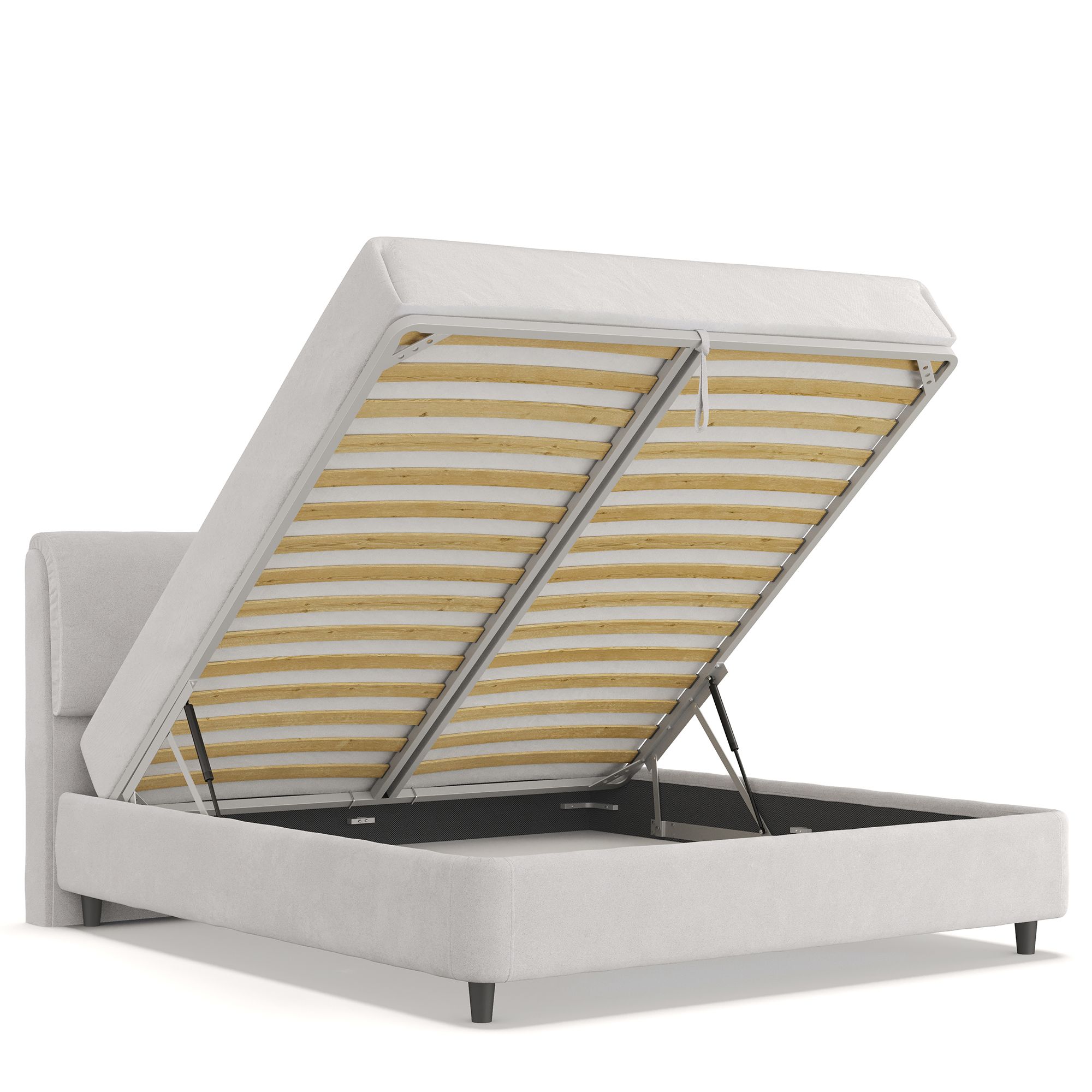 Вместительный короб внутри кровати подойдет для хранения подушек, белья и других вещей. В бельевом ящике нет перегородок – это позволяет использовать его, в том числе, для хранения длинных и крупногабаритных вещей.