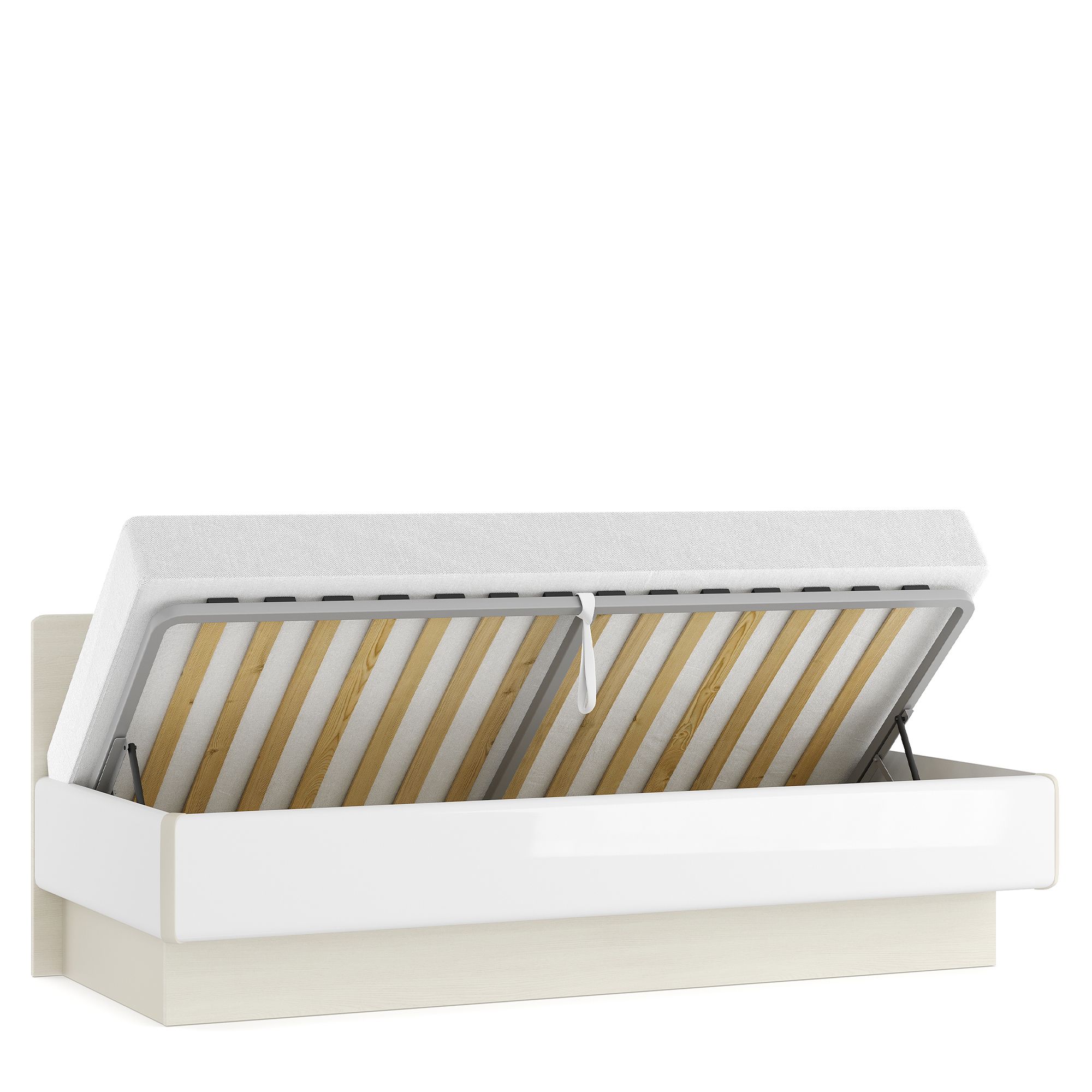 Вместительный бельевой ящик кровати создает дополнительное место для хранения объемных вещей. Простой и удобный доступ к нему обеспечивается благодаря применению надежного и качественного подъемного механизма, ресурса которого хватает на весь срок службы мебели.
