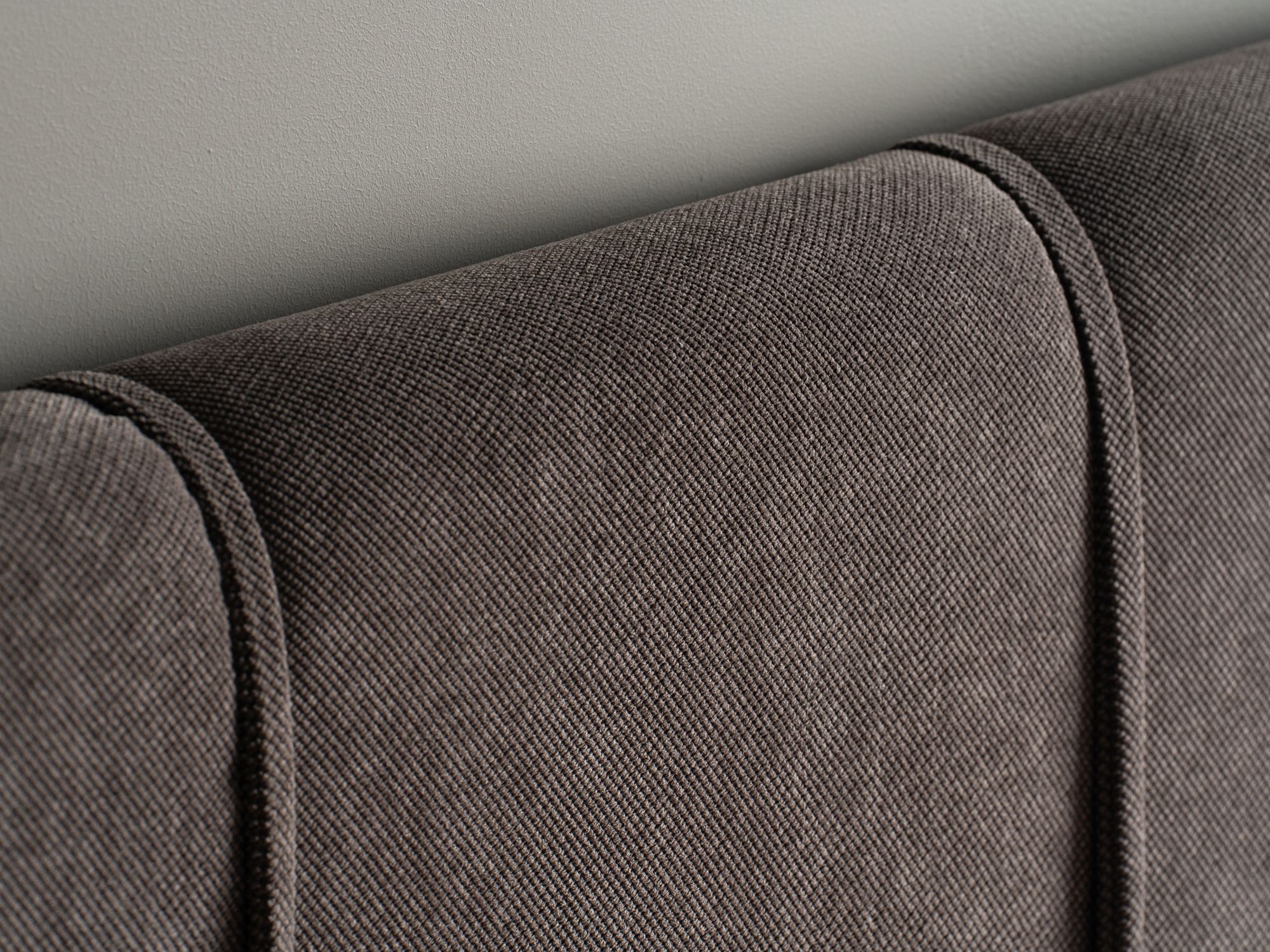 Высокое изголовье кровати оснащено мягкими элементами. Эргономичная форма изголовья позволяет удобно расположиться во время чтения, просмотра сериалов или работы с ноутбуком. На выбор предлагаются два варианта отделки – в ткани Sahara или Grizzly.