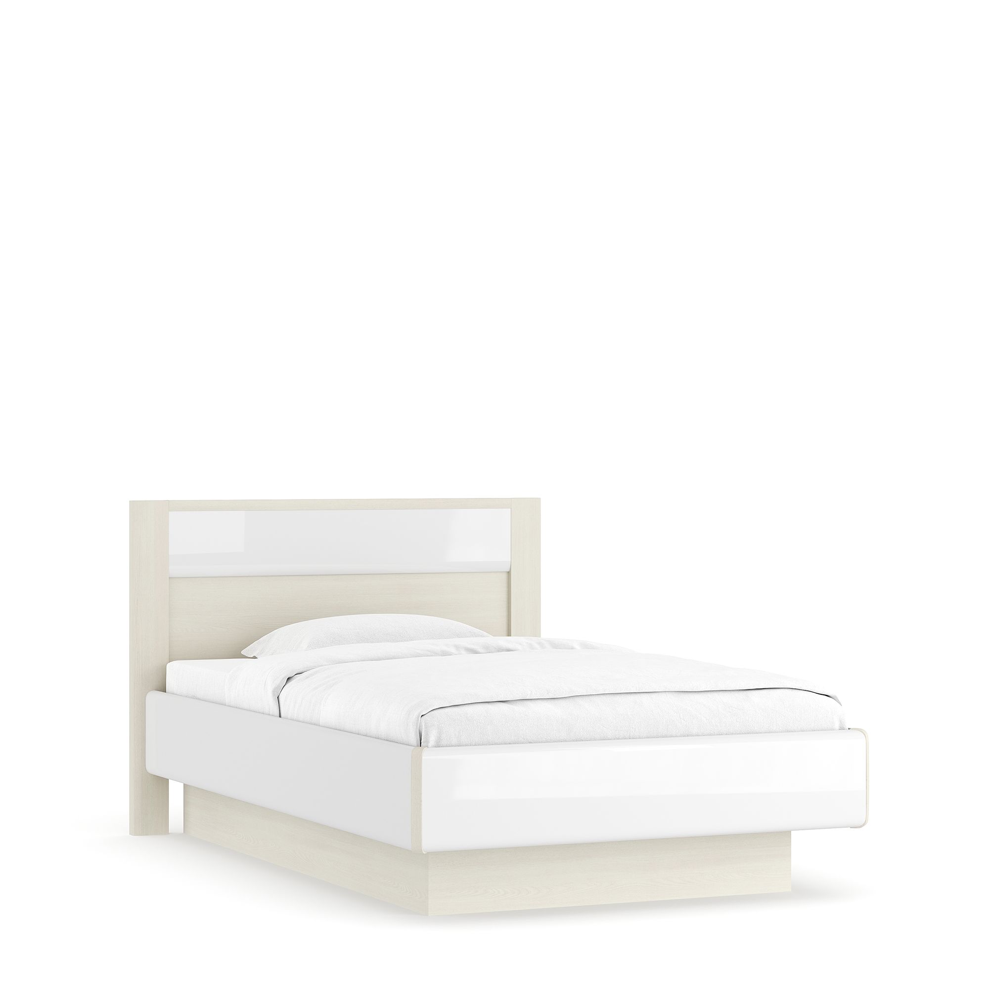 Изголовье комфортной полутораспальной кровати ELEGANTE декорировано глянцевой вставкой, которая гармонирует с фасадами шкафов, комодов и тумб коллекции ELEGANTE.
