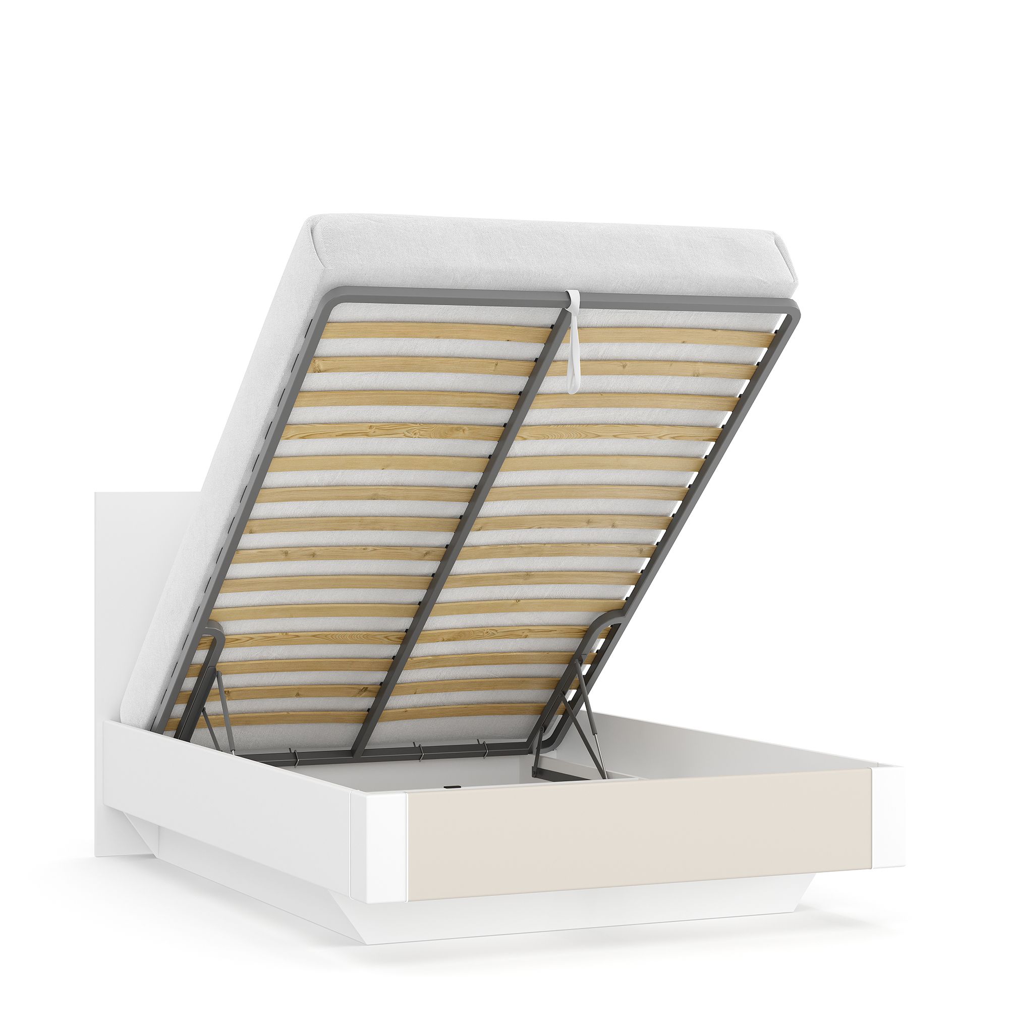 Бельевой ящик кровати оснащается качественным и надежным подъемным механизмом, который работает легко и плавно и рассчитан на долгие годы ежедневной интенсивной эксплуатации.