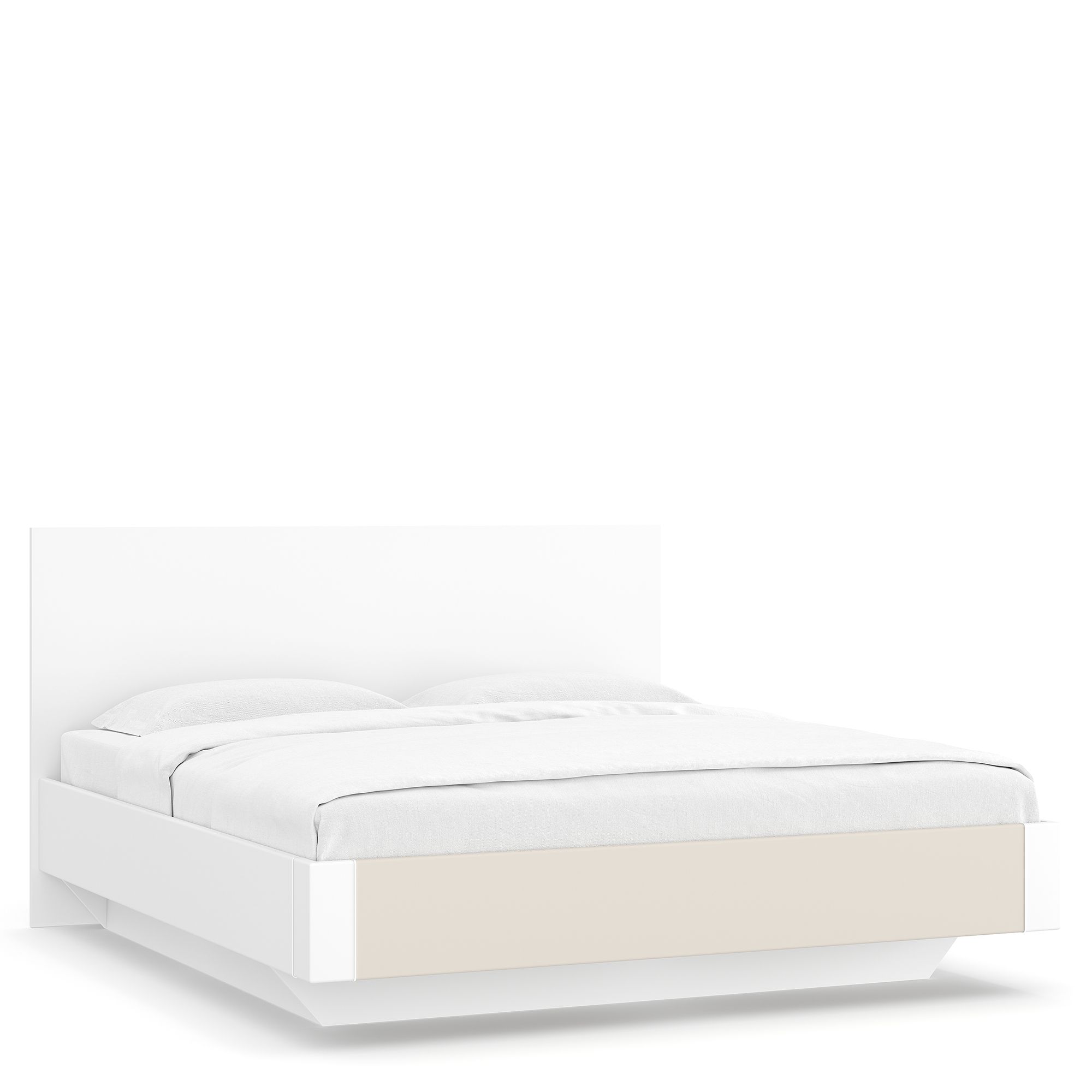 Бельевой ящик модели имеет меньшую площадь, чем спальное место. Такое исполнение создает необычный визуальный эффект, как будто кровать парит в воздухе. Кроме того, конструкция повышает безопасность: к кровати можно подходить с любой стороны, не опасаясь ушибить пальцы ног.