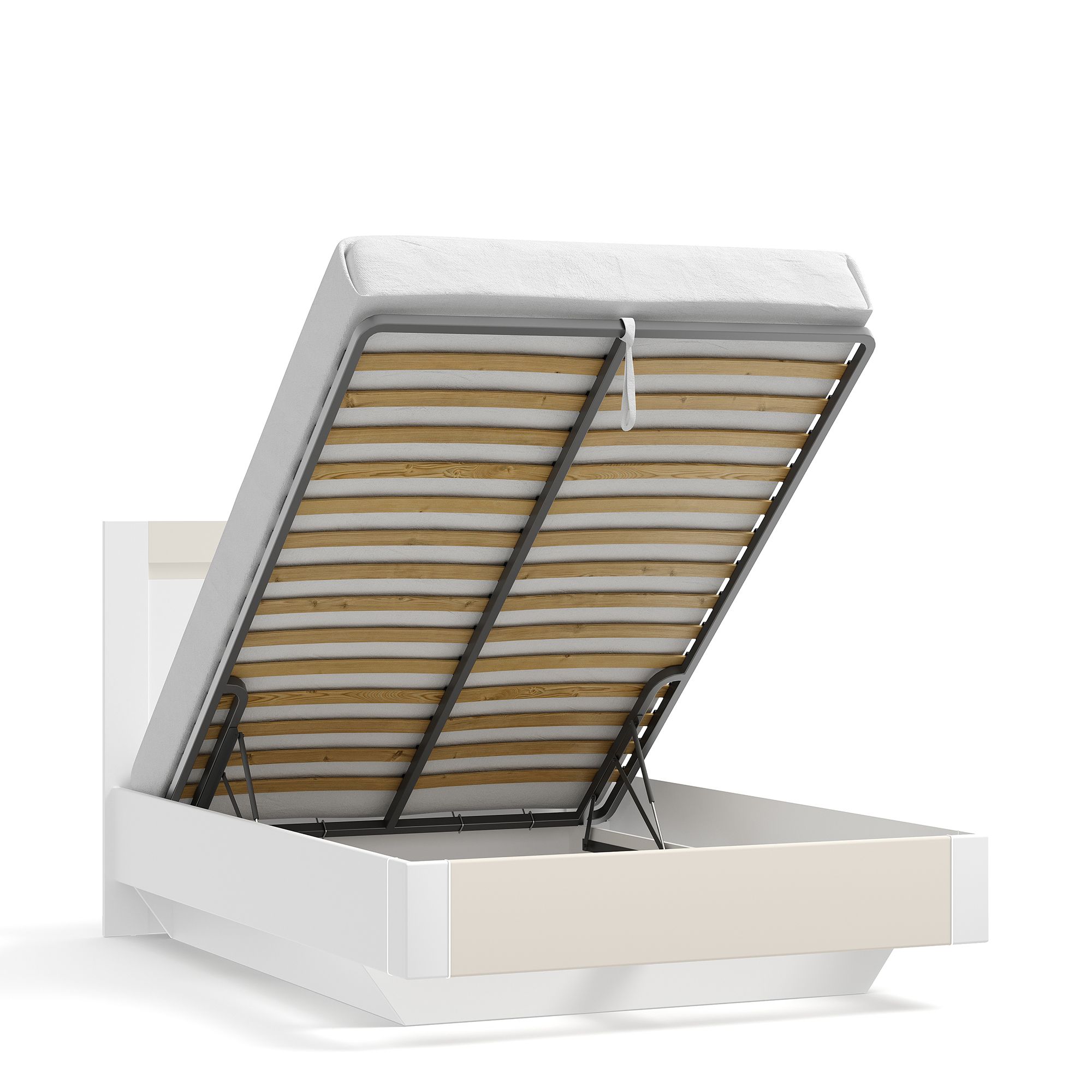 Изголовье и ножная царга полутороспальной кровати TURIN декорированы вставками в отделке эмалью. Конструкция с «парящим» основанием обеспечивает удобство и безопасность использования. Ортопедическая решетка с металлическим каркасом и подъемным механизмом входят в комплектацию модели. Вместительный бельевой ящик создает дополнительное пространство для хранения.