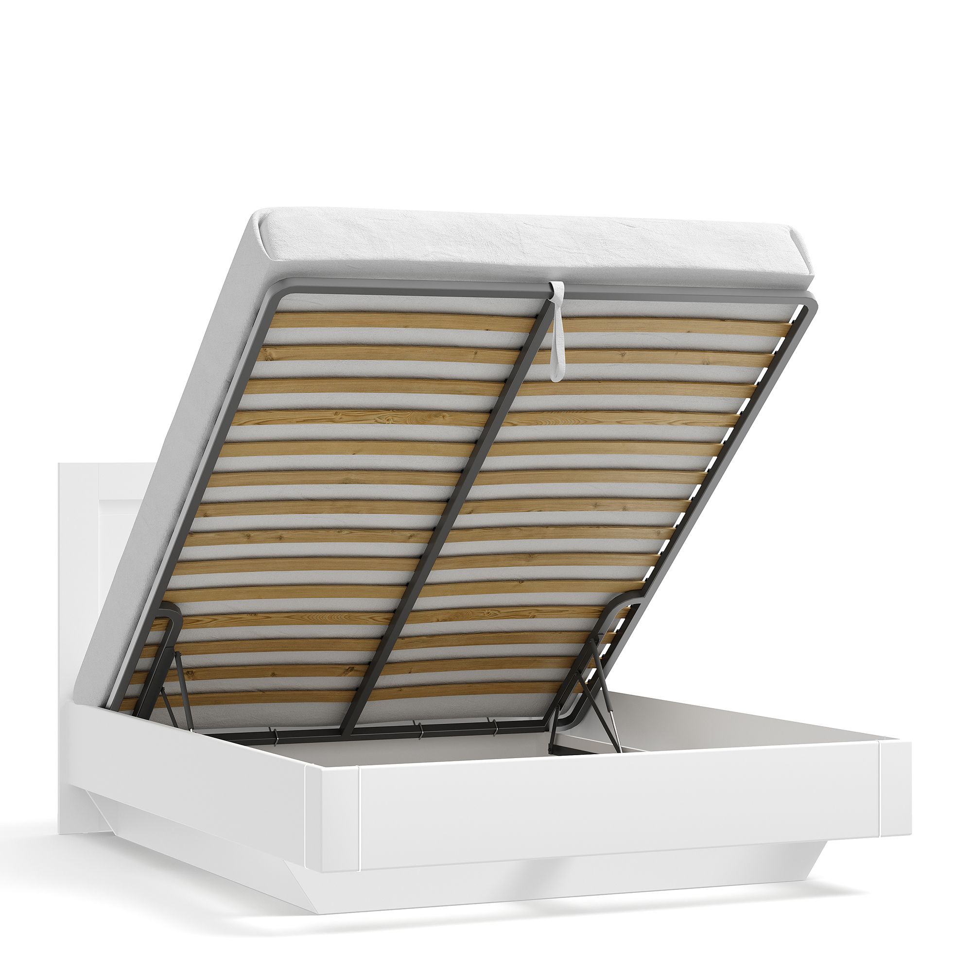 Бельевой ящик кровати оснащается качественным и надежным подъемным механизмом, который работает легко и плавно и рассчитан на долгие годы ежедневной интенсивной эксплуатации.