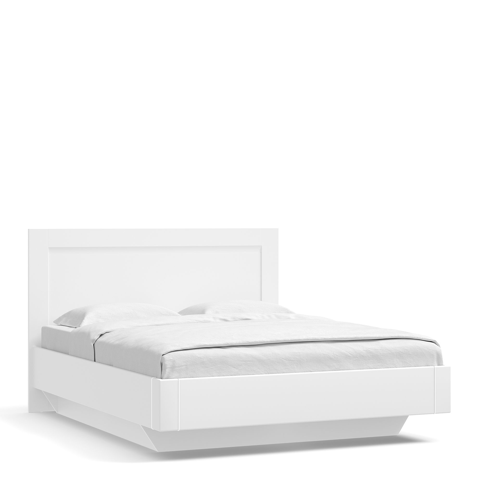 Бельевой ящик модели имеет меньшую площадь, чем спальное место. Такое исполнение создает необычный визуальный эффект, как будто кровать парит в воздухе. Кроме того, конструкция повышает безопасность: к кровати можно подходить с любой стороны, не опасаясь ушибить пальцы ног.