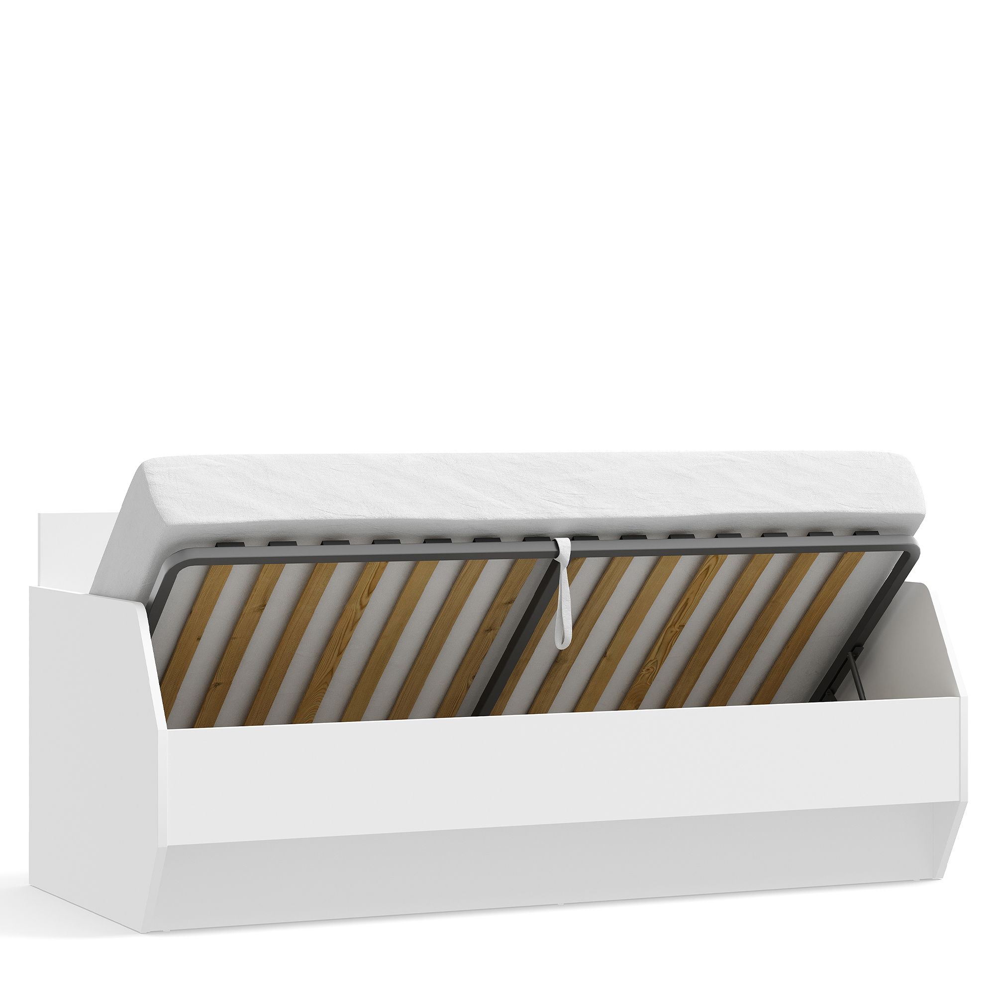 Односпальная кровать TURIN для молодежных комнат имеет бортик по длинной стороне и может оснащаться мягкими элементами в тканевой отделке,трансформирующими ее в удобный диван (элементы заказываются отдельно). Модель оснащена вместительным бельевым ящиком с подъемным механизмом. Рекомендуемые параметры матраса: вес до 30 кг,высота до 25 см.