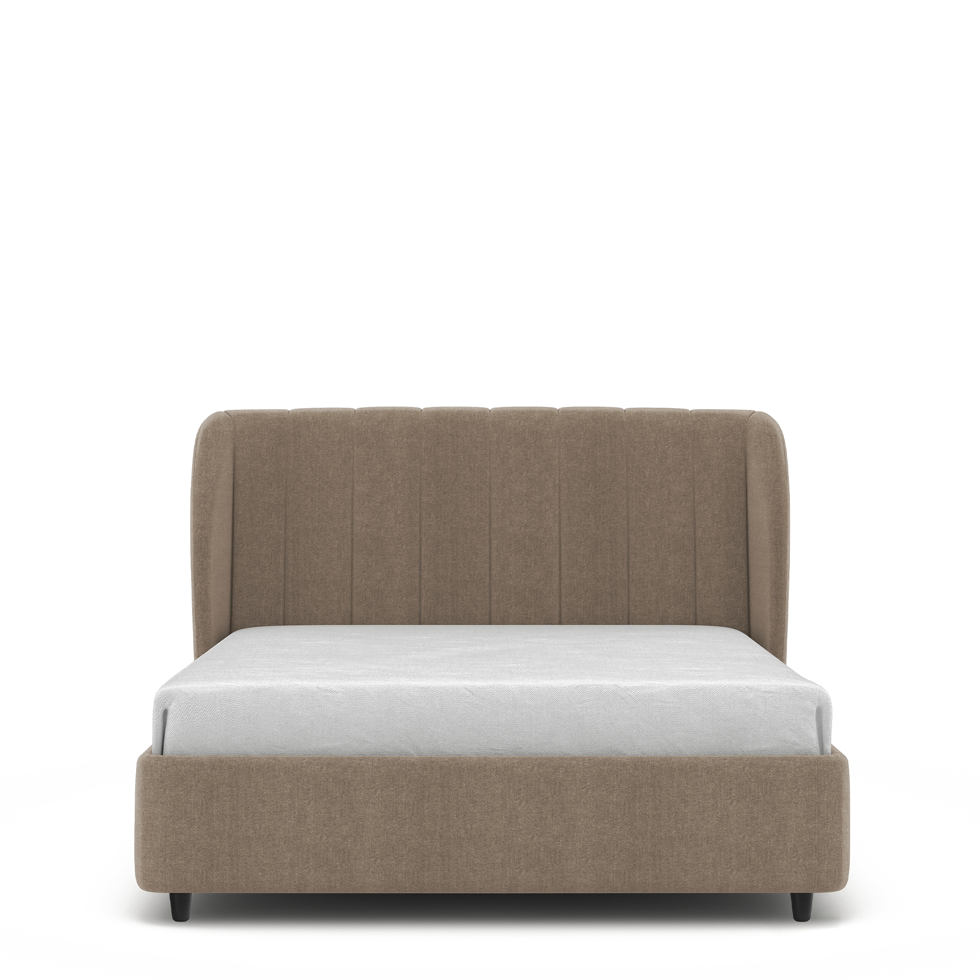 Двуспальная кровать NAPOLI в полностью мягком текстильном корпусе оснащена высоким изголовьем с «ушками», декорированным вертикальной прострочкой. Модель с надежным подъемным механизмом и вместительным ящиком для белья. Металлическое основание и ортопедическая решетка (каркас – металл) входят в комплектацию модели. Максимальная высота матраса – до 50 см. Высота ножек кровати – 10 см.