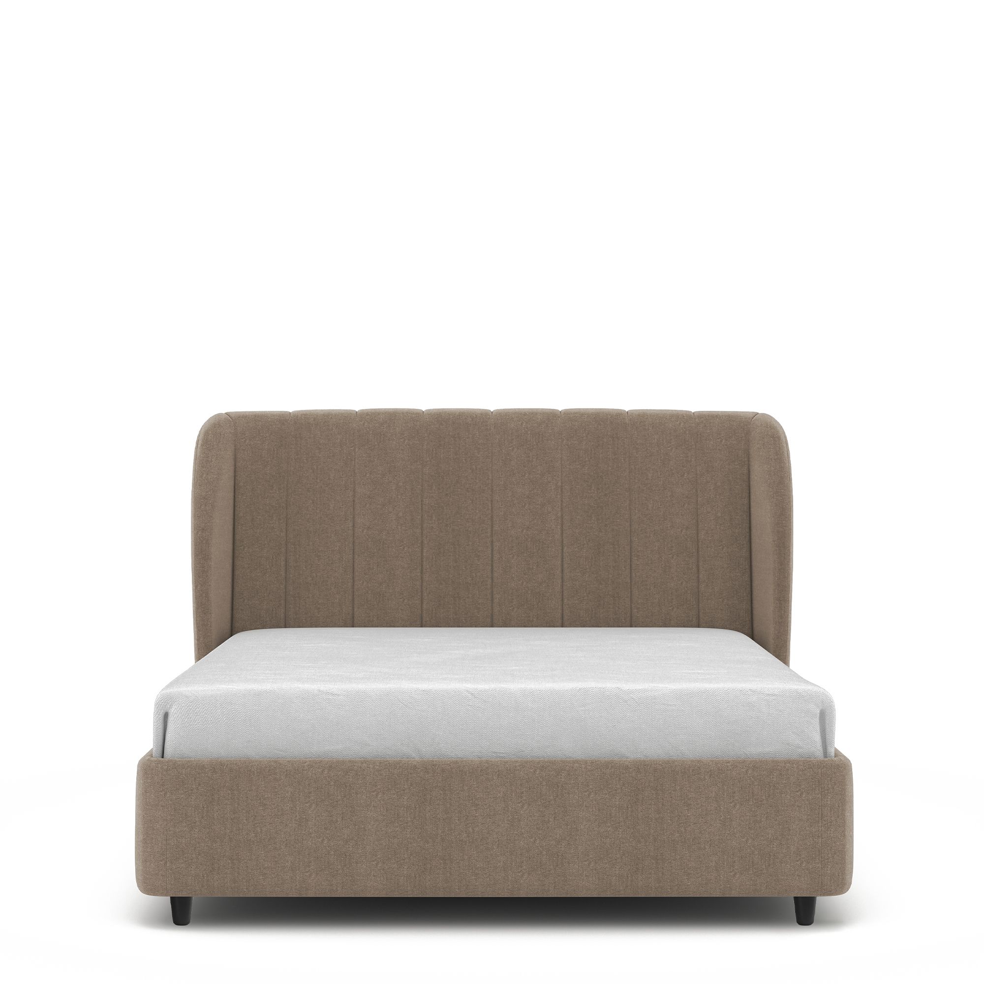 Двуспальная кровать NAPOLI в полностью мягком текстильном корпусе оснащена высоким изголовьем с «ушками», декорированным вертикальной прострочкой. Модель с надежным подъемным механизмом и вместительным ящиком для белья. Металлическое основание и ортопедическая решетка (каркас – металл) входят в комплектацию модели. Максимальная высота матраса – до 50 см. Высота ножек кровати – 10 см.
