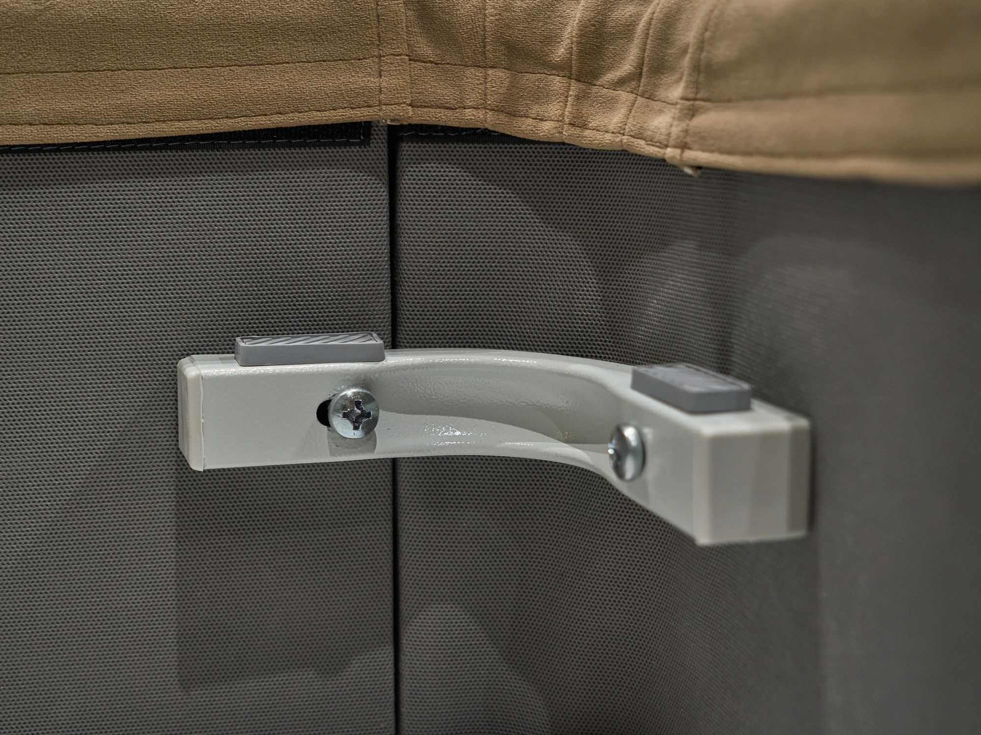 Бельевой ящик оснащен ручками для удобного размещения дна кровати. Ручка также служит вентиляционным отверстием, что увеличивает воздухопроницаемость и гигиеничность внутреннего пространства бельевого ящика.