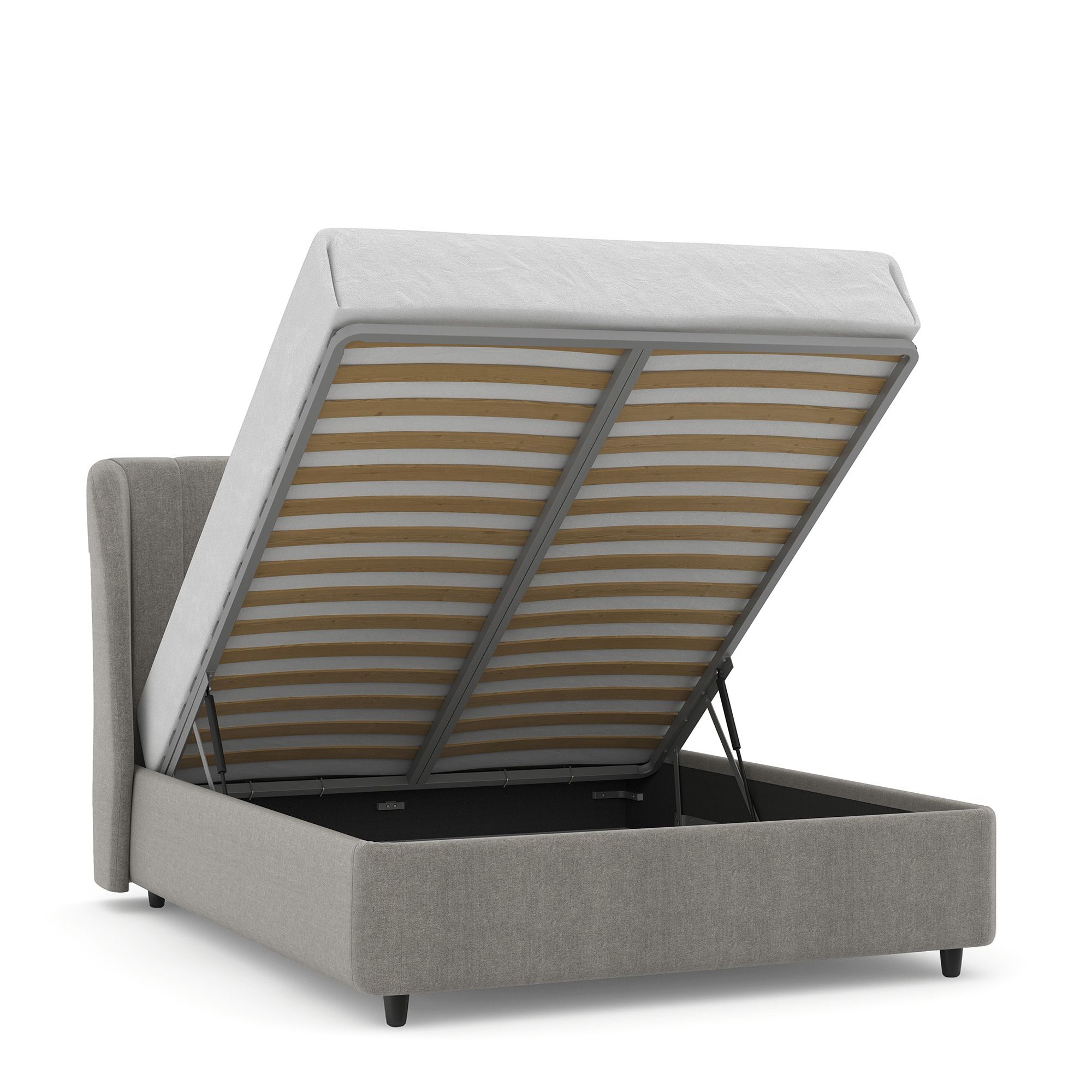 Вместительный короб внутри кровати подойдет для хранения подушек, белья и других вещей. В бельевом ящике нет перегородок – это позволяет использовать его, в том числе, для хранения длинных и крупногабаритных вещей.