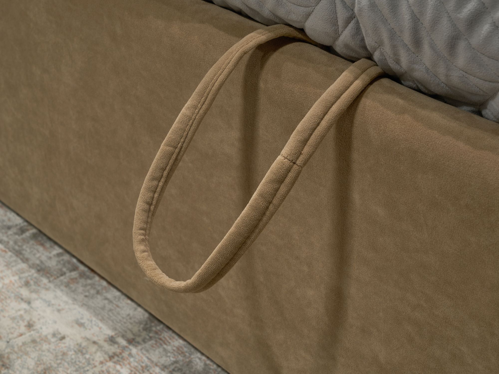 Бельевой ящик оснащен ручками для удобного размещения дна кровати. Ручка также служит вентиляционным отверстием, что увеличивает воздухопроницаемость и гигиеничность внутреннего пространства бельевого ящика.