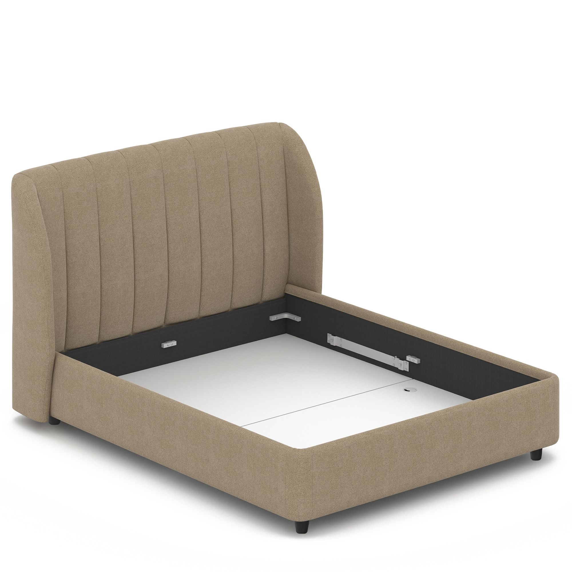 Двуспальная кровать NAPOLI в полностью мягком текстильном корпусе оснащена высоким изголовьем с «ушками», декорированным вертикальной прострочкой. Модель с надежным подъемным механизмом и вместительным ящиком для белья. Металлическое основание и ортопедическая решетка (каркас – металл) входят в комплектацию модели. Максимальная высота матраса – до 50 см. Высота ножек кровати – 10 см.