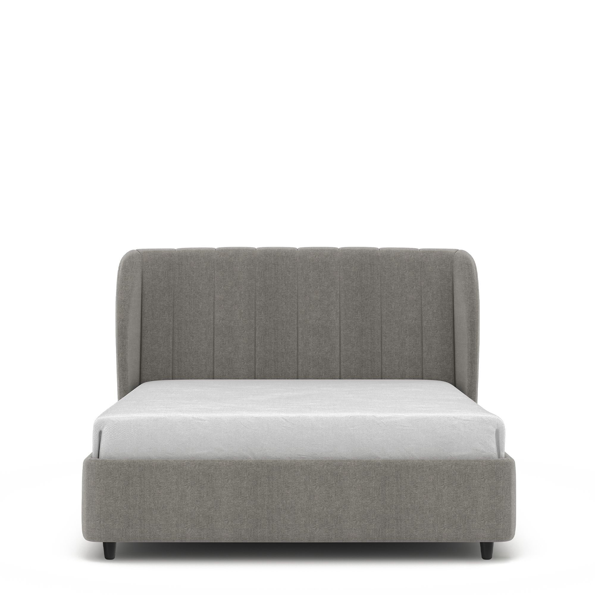 Двуспальная кровать NAPOLI в полностью мягком текстильном корпусе оснащена высоким изголовьем с «ушками», декорированным вертикальной прострочкой. Модель с надежным подъемным механизмом и вместительным ящиком для белья. Металлическое основание и ортопедическая решетка (каркас – металл) входят в комплектацию модели. Максимальная высота матраса – до 50 см. Высота ножек кровати – 10 см.