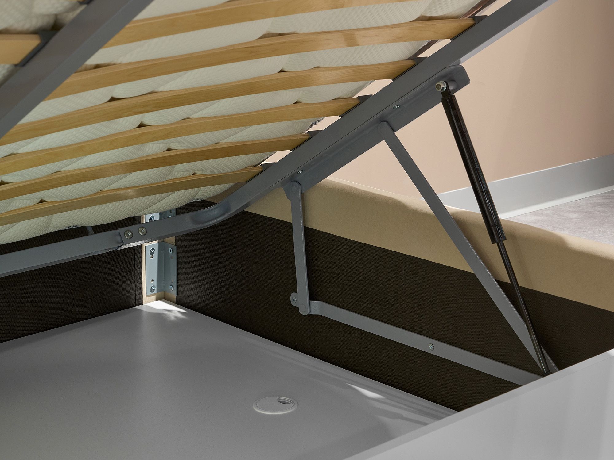 Надежный механизм обеспечивает высокий угол подъема для удобства открывания, обеспечивая доступ к пространству для хранения вещей.