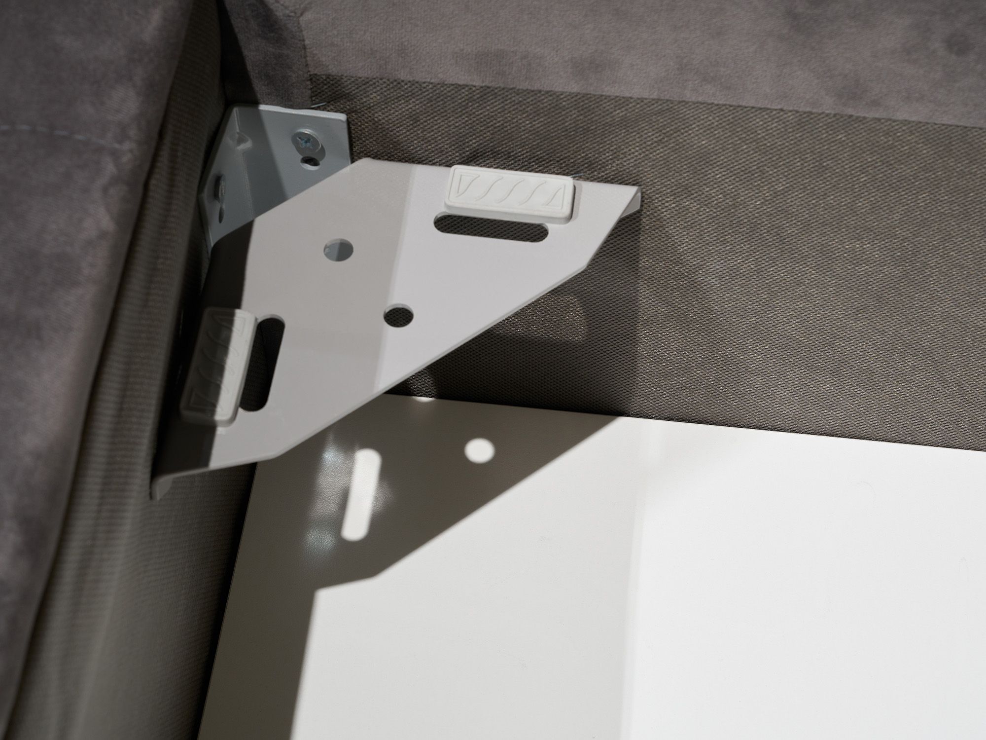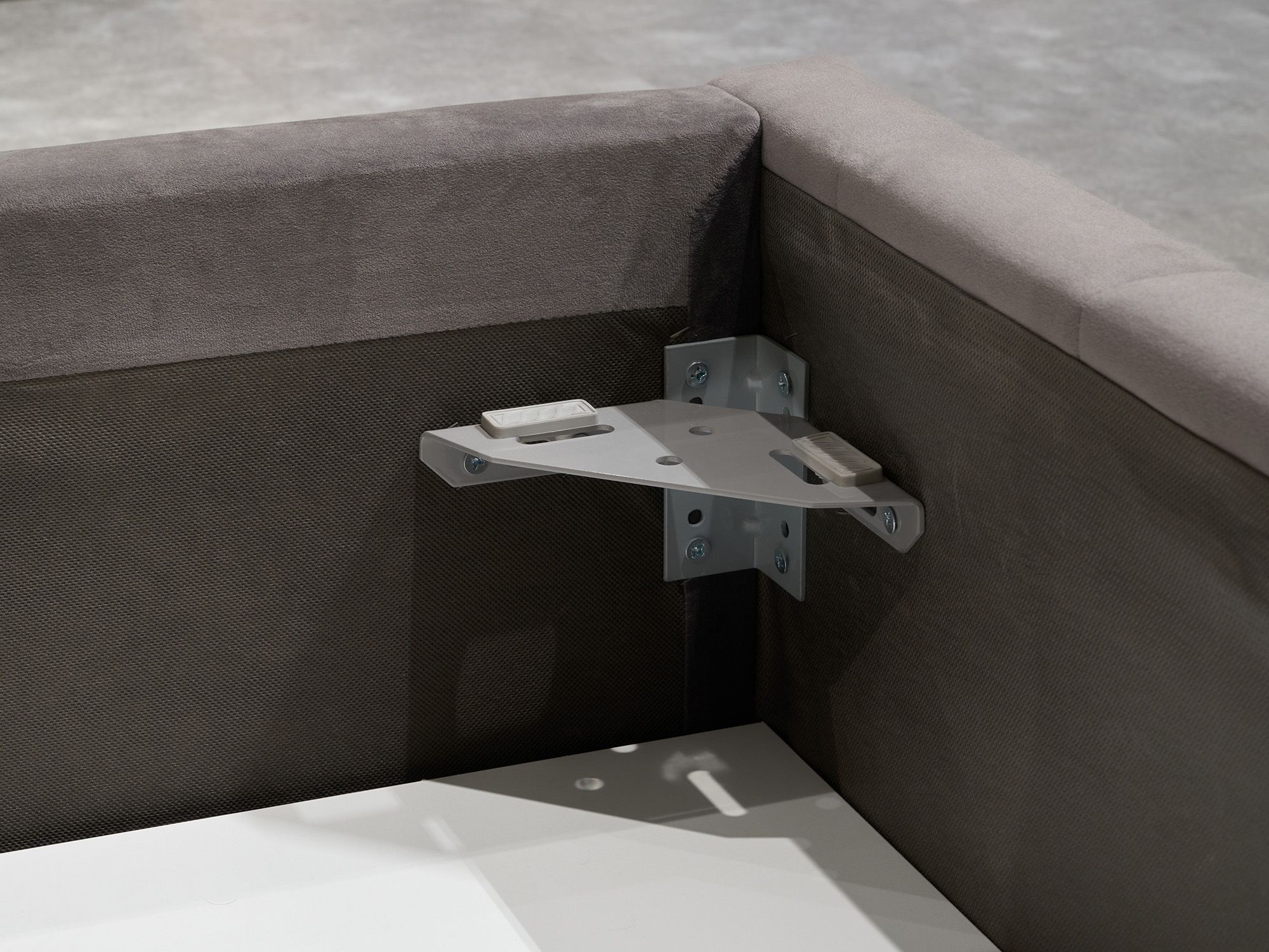 При производстве используются долговечные качественные комплектующие, фурнитура и угловые соединения, которые обеспечивают жесткое соединение царги и изножья, служат упором для ортопедического основания, гарантируют надежное крепление элементов конструкции, длительное использование и возможность многократной сборки.