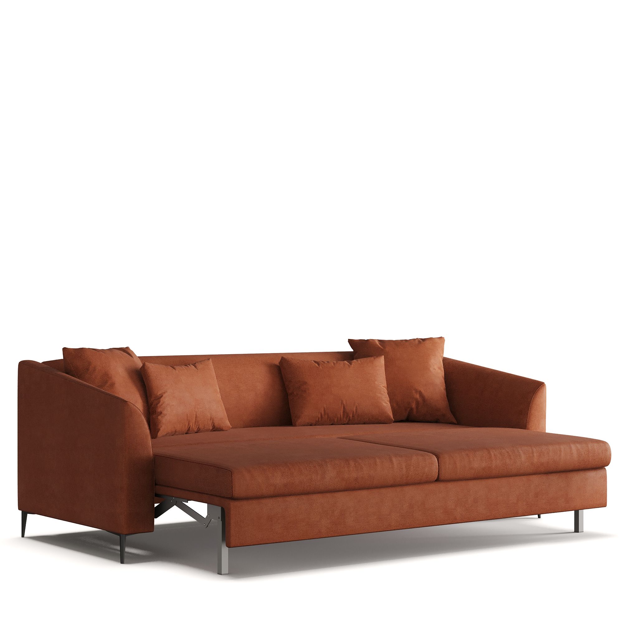 Сиденье «шагает» вверх и вперёд, вторая часть спального места поднимается из ниши вверх на уровень сиденья дивана. Способ раскладывания исключает повреждение напольного покрытия даже при ежедневной трансформации дивана.