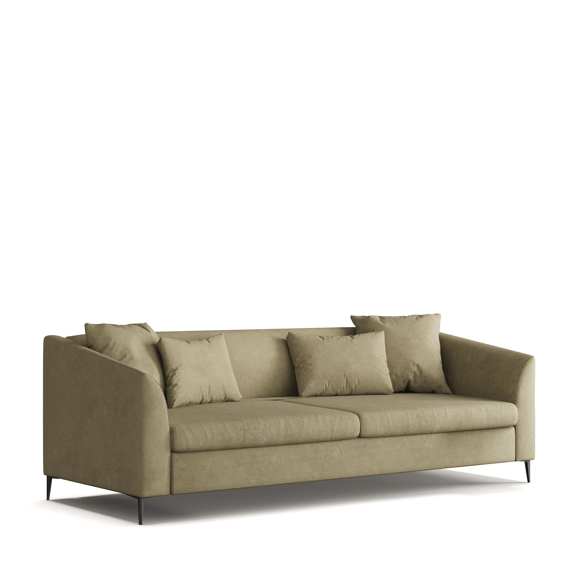 Прямой диван TALLA на стильных металлических опорах рассчитан на три посадочных места. Мягкие подушки и велюровая обивка обеспечивают исключительный комфорт. Помимо дивана коллекция мягкой мебели TALLA включает комфортное кресло с подушкой, позволяющей менять глубину посадки для большего удобства.