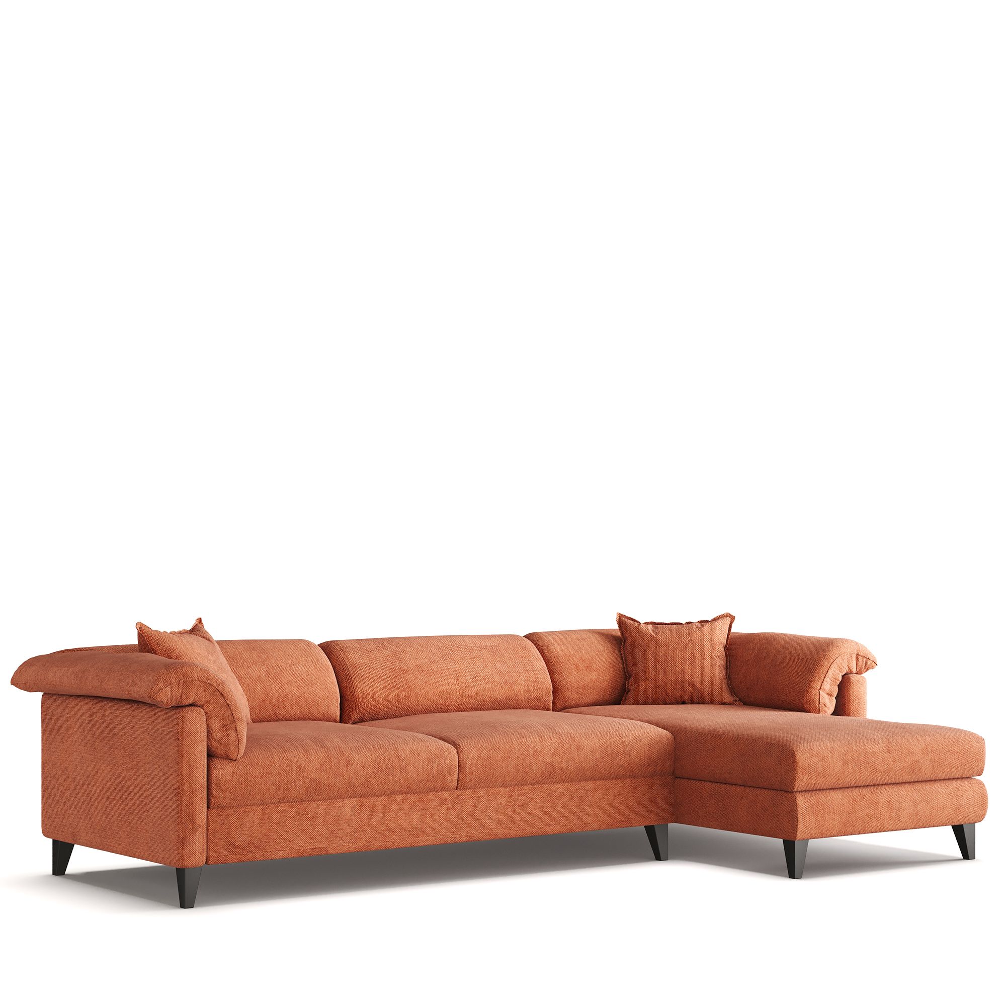 Угловой диван TOKKA с правой оттоманкой выполнен в стиле американской классики. Глубокое сиденье и обволакивающие подушки плавно переходят в спинку и подлокотники, создавая ощущение мягкости и уюта. Съемные чехлы на сидениях и подушках упрощают уход. Механизм трансформации «Тик-Так» и сбалансированный состав наполнителей позволяют использовать диван в качестве полноценного спального места. Под основанием располагается бельевой ящик.  Коллекция включает прямые и угловые диваны (с подъемным механизмом и без), что позволяет решать широкий спектр интерьерных задач.