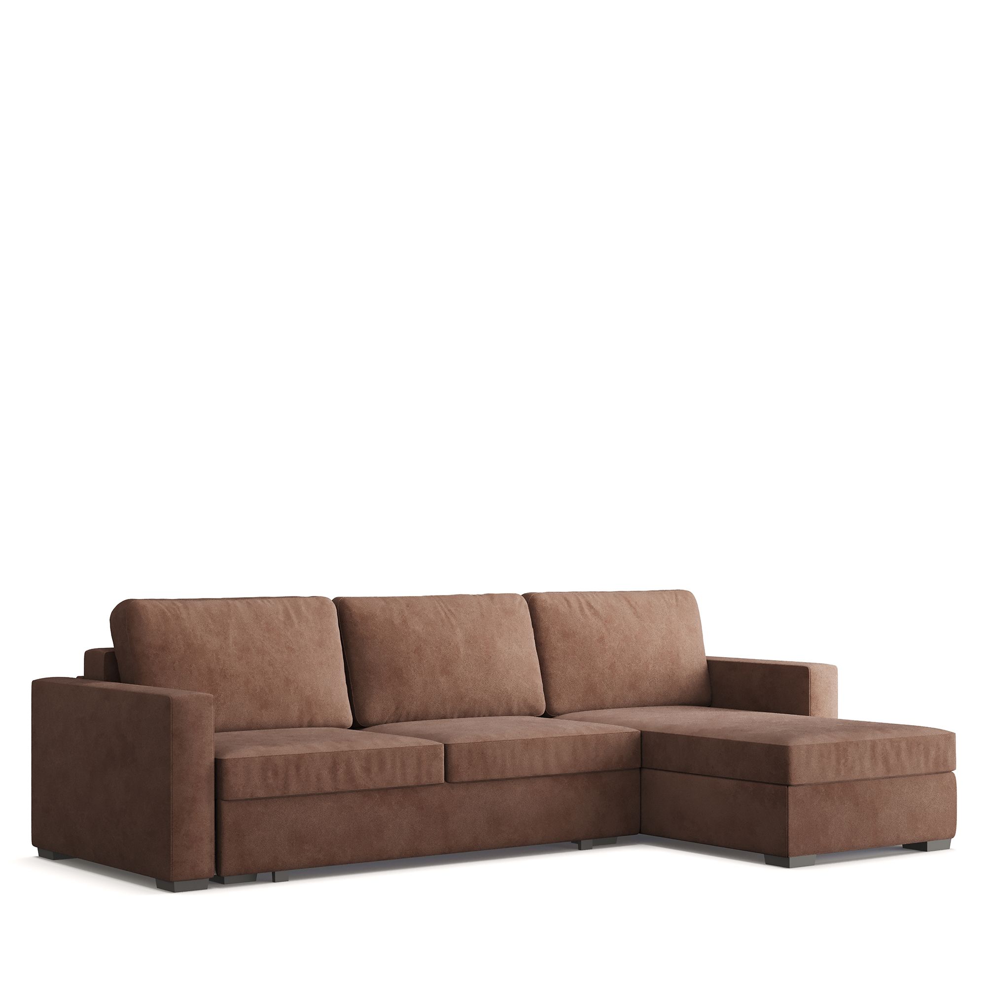Угловой диван ANTAU с правой оттоманкой выполнен в отделке искусственной замшей. Мебель обеспечивает превосходный комфорт благодаря приспинным подушкам с синтетическим пухом, легко принимающим форму тела. Подушки сиденья дополняют эту комбинацию, обеспечивая глубокую и удобную посадку. Механизм трансформации «Тик-Так» и сбалансированный состав наполнителей позволяют использовать модель в качестве полноценного спального места. В коллекцию входят диваны с оттоманками, прямые диваны и кресла, что позволяет создавать различные интерьерные композиции.