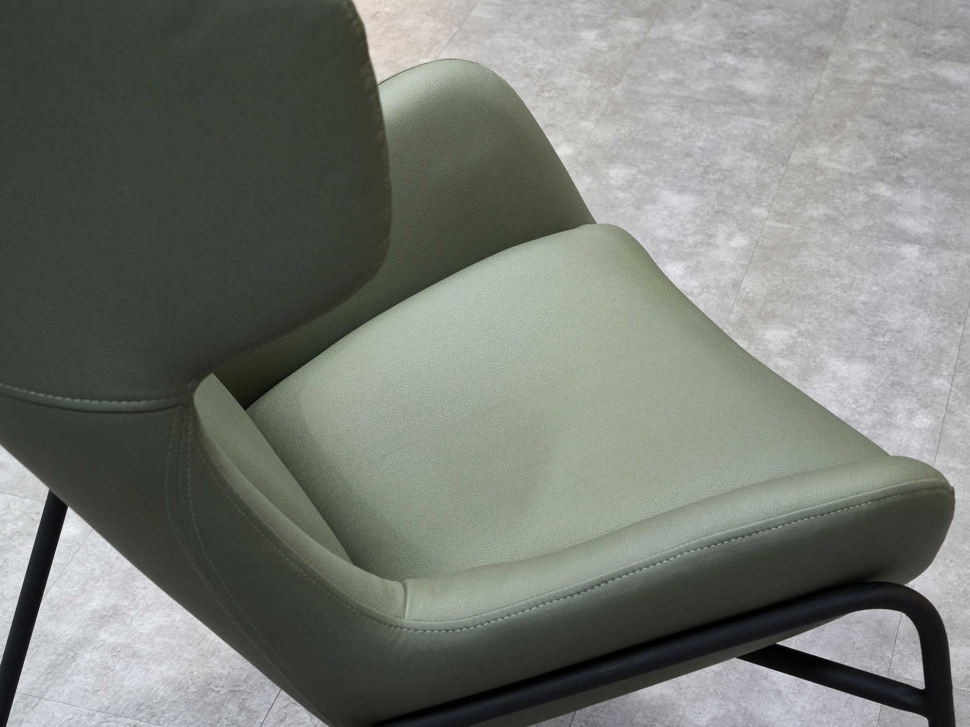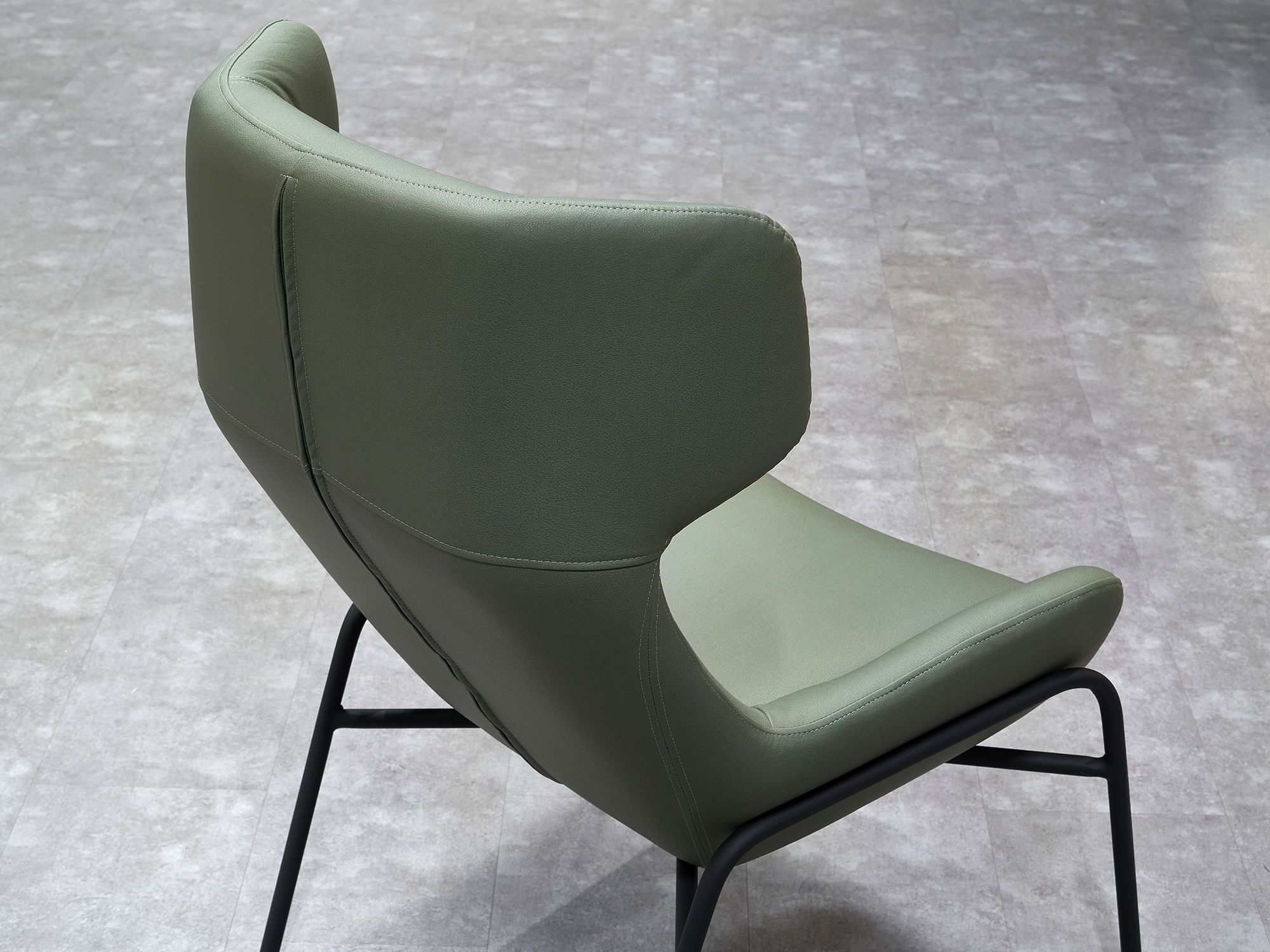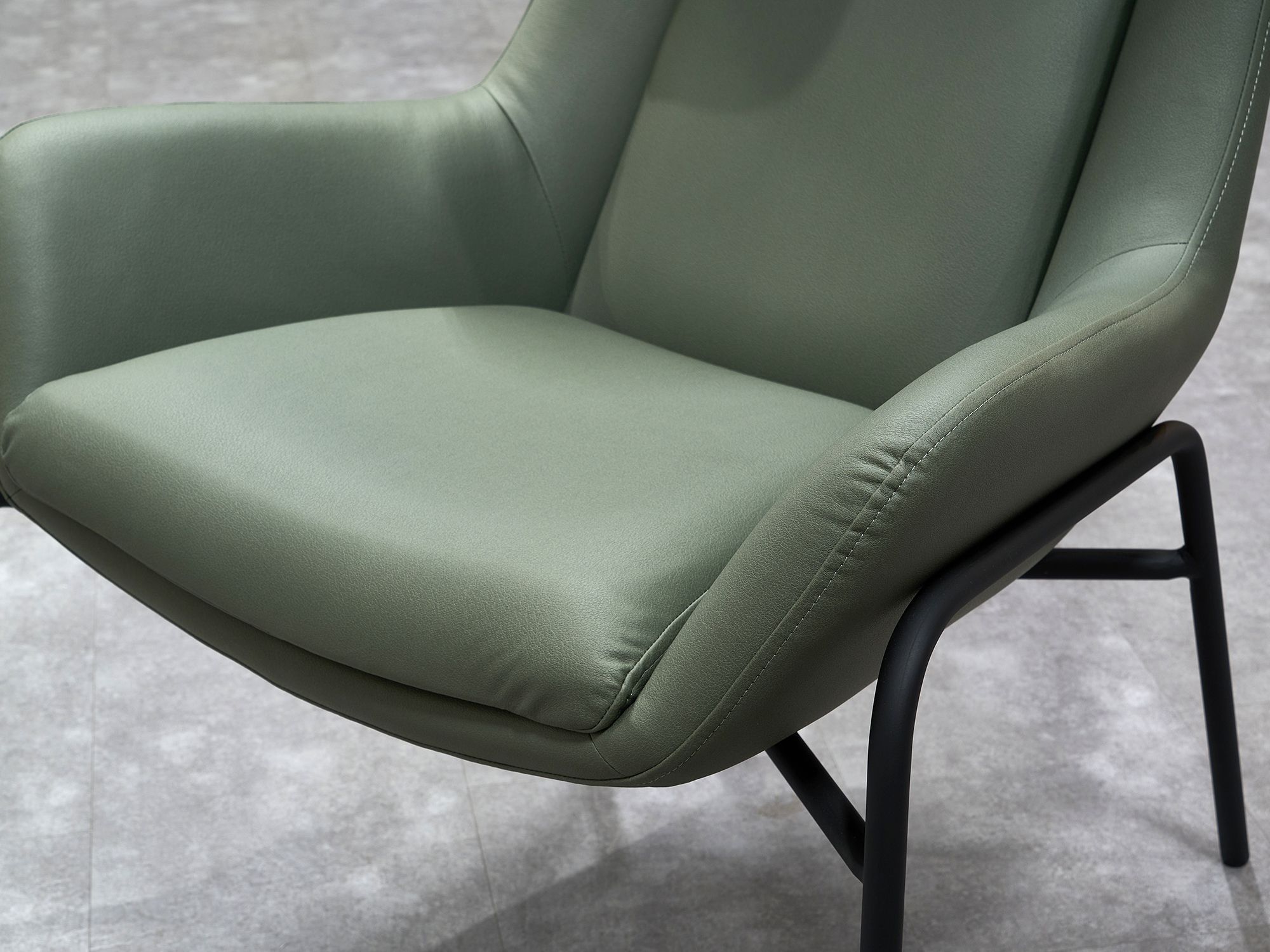 Дизайнерское кресло ГЛЕНО / GLENO в отделке экокожей базируется на металлическом каркасе и выдерживает вес до 120 кг. Высокие металлические опоры упрощают уборку, в том числе, с использованием робота-пылесоса. Спинка кресла способствует физиологически правильному положению позвоночника во время длительного сидения и сохранению правильной осанки. Узкие подлокотники обеспечивают экономию пространства и придают мебели утонченный, изысканный вид.