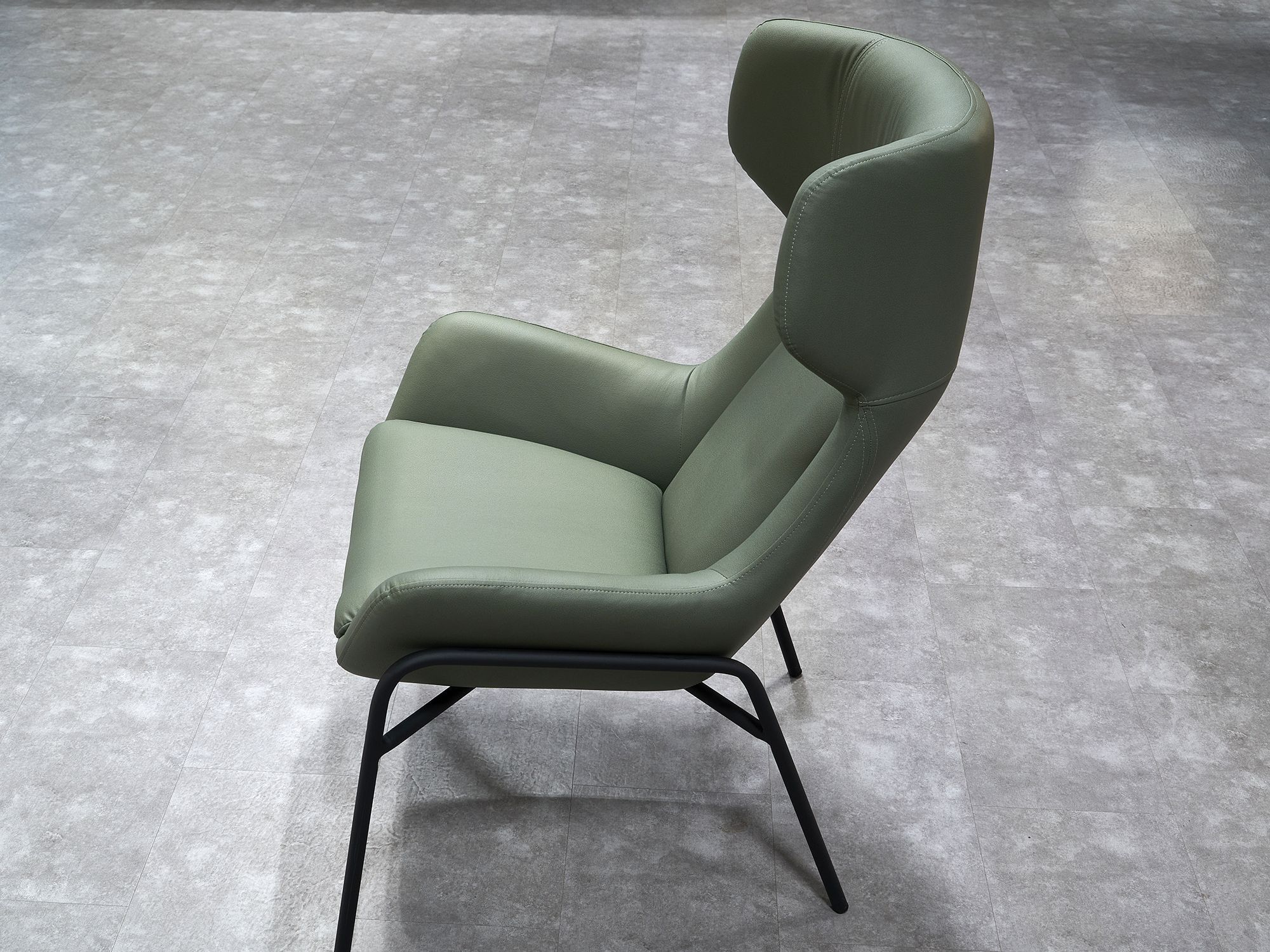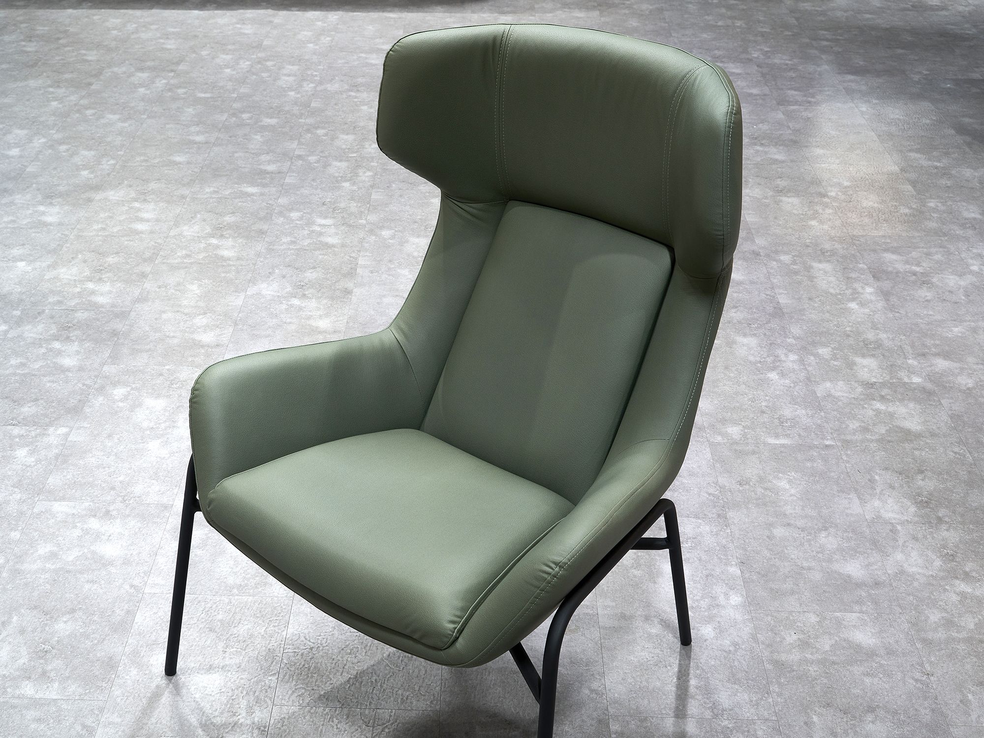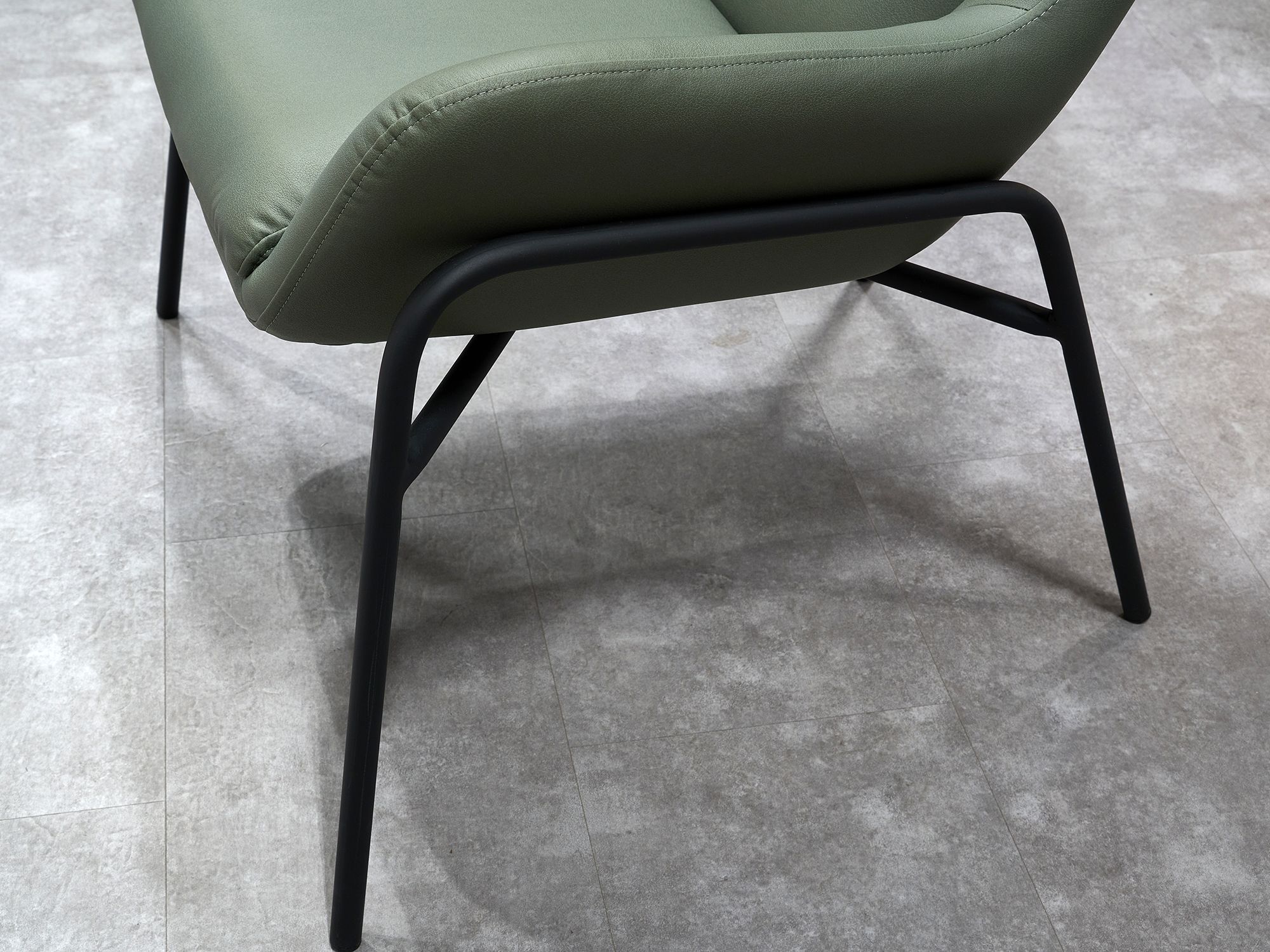 Дизайнерское кресло ГЛЕНО / GLENO в отделке экокожей базируется на металлическом каркасе и выдерживает вес до 120 кг. Высокие металлические опоры упрощают уборку, в том числе, с использованием робота-пылесоса. Спинка кресла способствует физиологически правильному положению позвоночника во время длительного сидения и сохранению правильной осанки. Узкие подлокотники обеспечивают экономию пространства и придают мебели утонченный, изысканный вид.