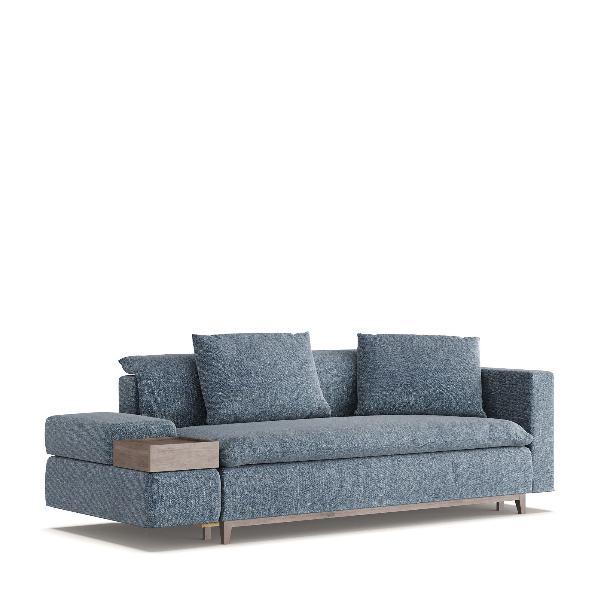 Прямой диван LANZ в отделке практичной тканью «Рогожка» рассчитан на три посадочных места. Механизм трансформации «Еврокнижка» и сбалансированный состав наполнителей позволяют использовать модель в качестве полноценного спального места. Диван оснащен одним узким и одним широким подлокотником с ящиком для хранения.