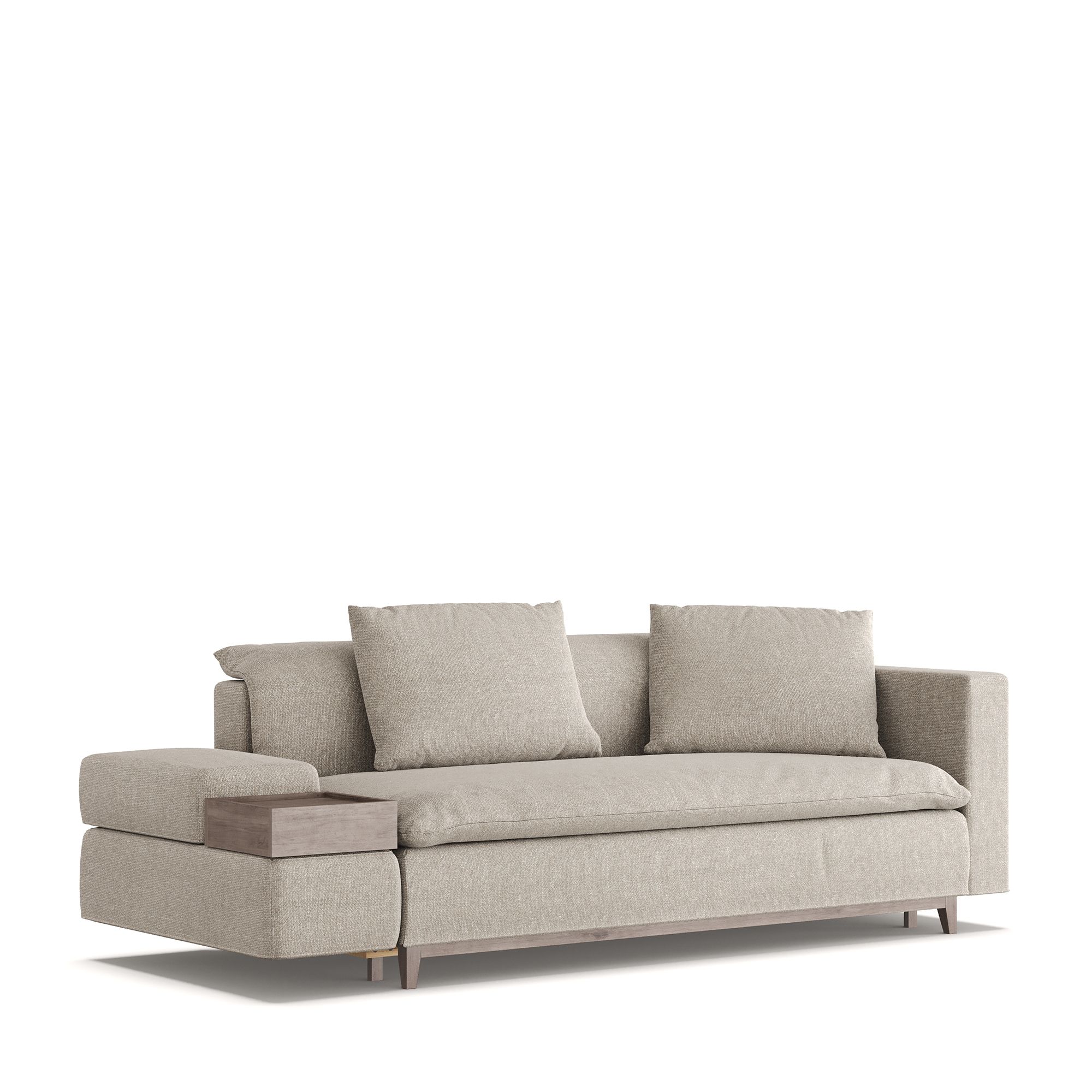 Прямой диван LANZ в отделке практичной тканью «Рогожка» рассчитан на три посадочных места. Механизм трансформации «Еврокнижка» и сбалансированный состав наполнителей позволяют использовать модель в качестве полноценного спального места. Диван оснащен одним узким и одним широким подлокотником с ящиком для хранения.