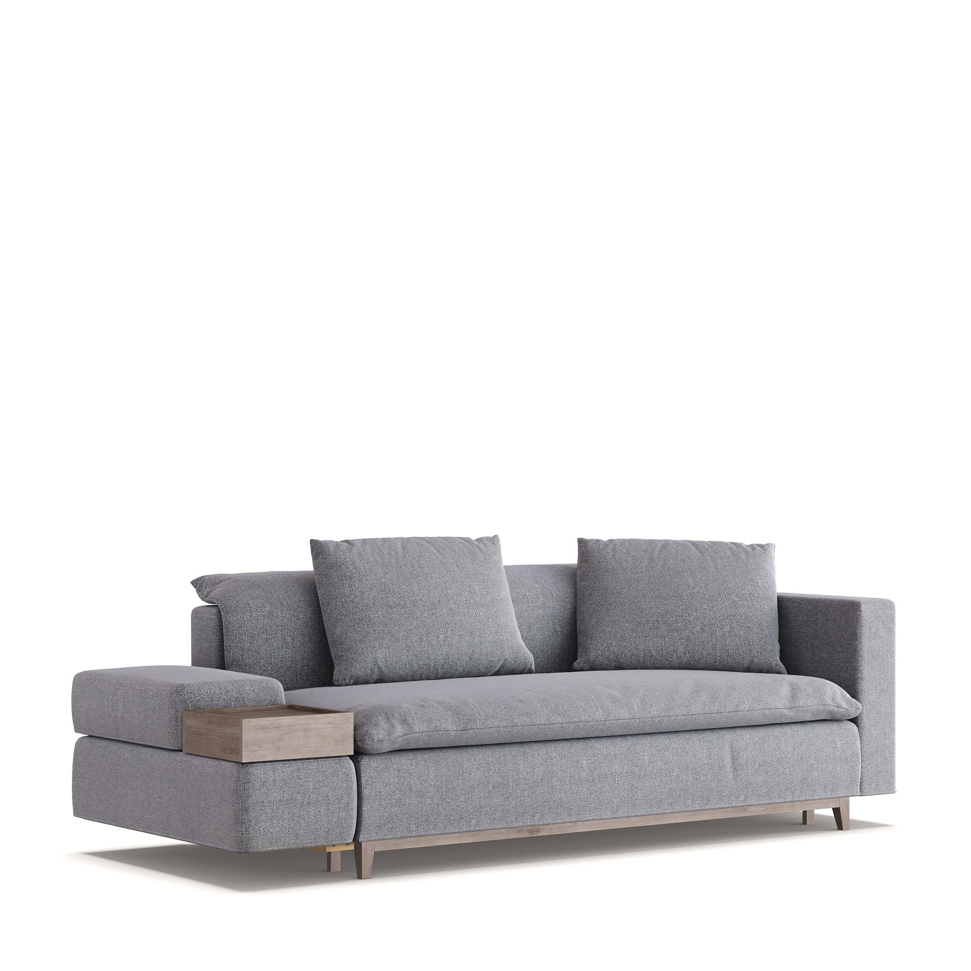 Прямой диван LANZ в отделке практичной тканью «Рогожка» рассчитан на три посадочных места. Механизм трансформации «Еврокнижка» и сбалансированный состав наполнителей позволяют использовать модель в качестве полноценного спального места. Диван оснащен одним узким и одним широким подлокотником с ящиком для хранения.