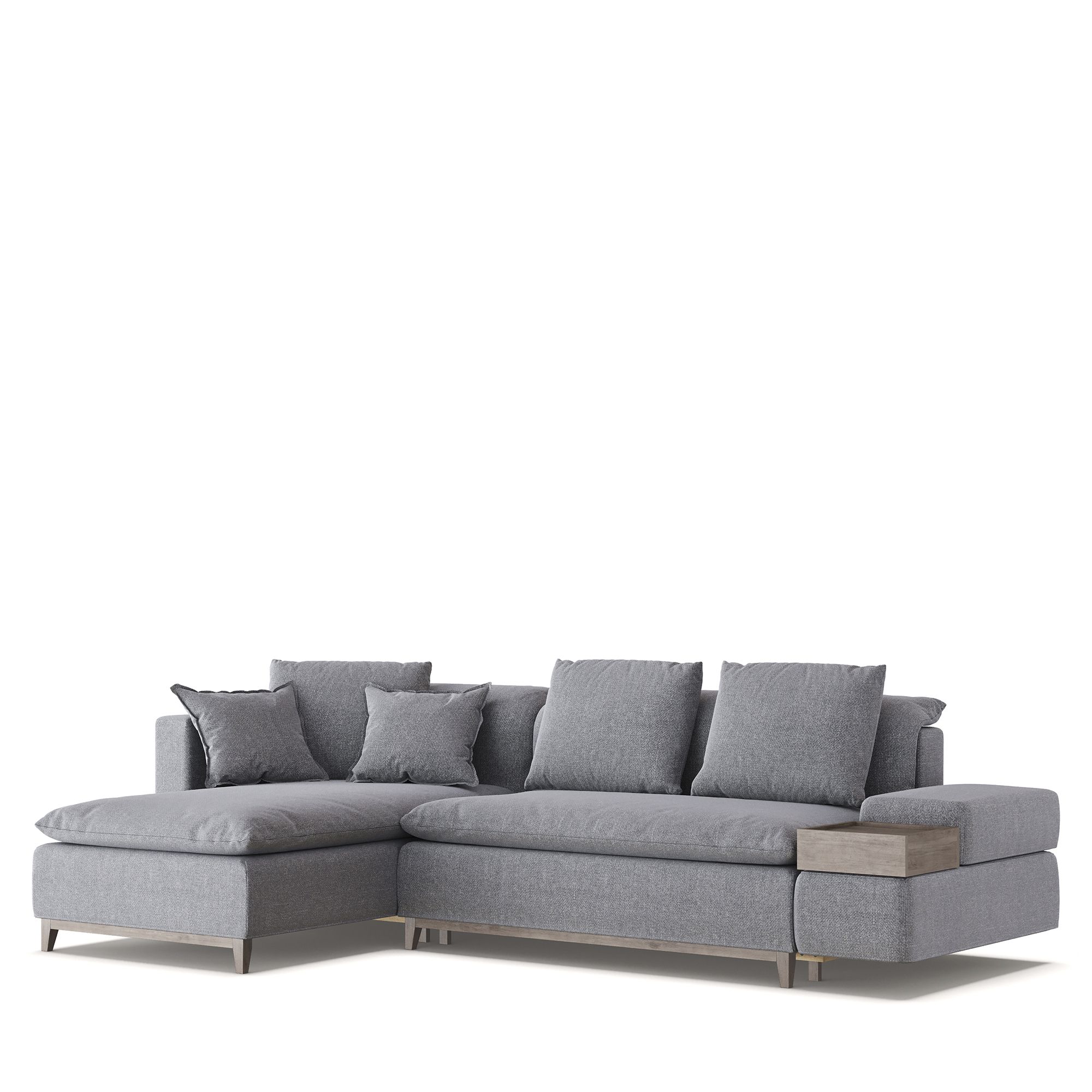 Угловой диван LANZ с левой оттоманкой оснащен широким подлокотником с ящиком для хранения.