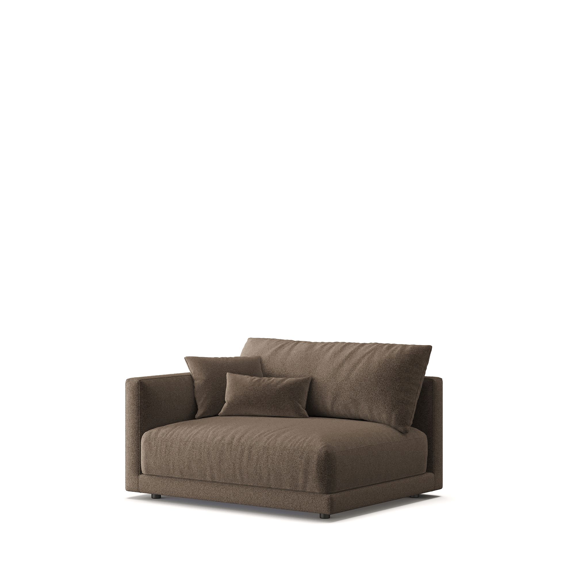 Диванный модуль SOLIN с левой боковиной выполнен в отделке практичной тканью «Рогожка». Мягкое сиденье создано на основе пены Memory Foam. Высокоэластичная пена обладает значительным запасом прочности и рассчитана на 15 лет интенсивной эксплуатации. Глубина сиденья и обволакивающие подушки создают ощущение мягкости и уюта, приглашая расслабиться. Элемент может использоваться и как в составе композиции, и как самостоятельный предмет мебели. Коллекция включает одно- и трехместные модули, а также оттоманки с правым и левым подлокотником, угловой модуль и подлокотники. Благодаря системе соединений «Крокодил» элементы легко сцепляются между собой, позволяя создать композицию необходимого размера и формы.