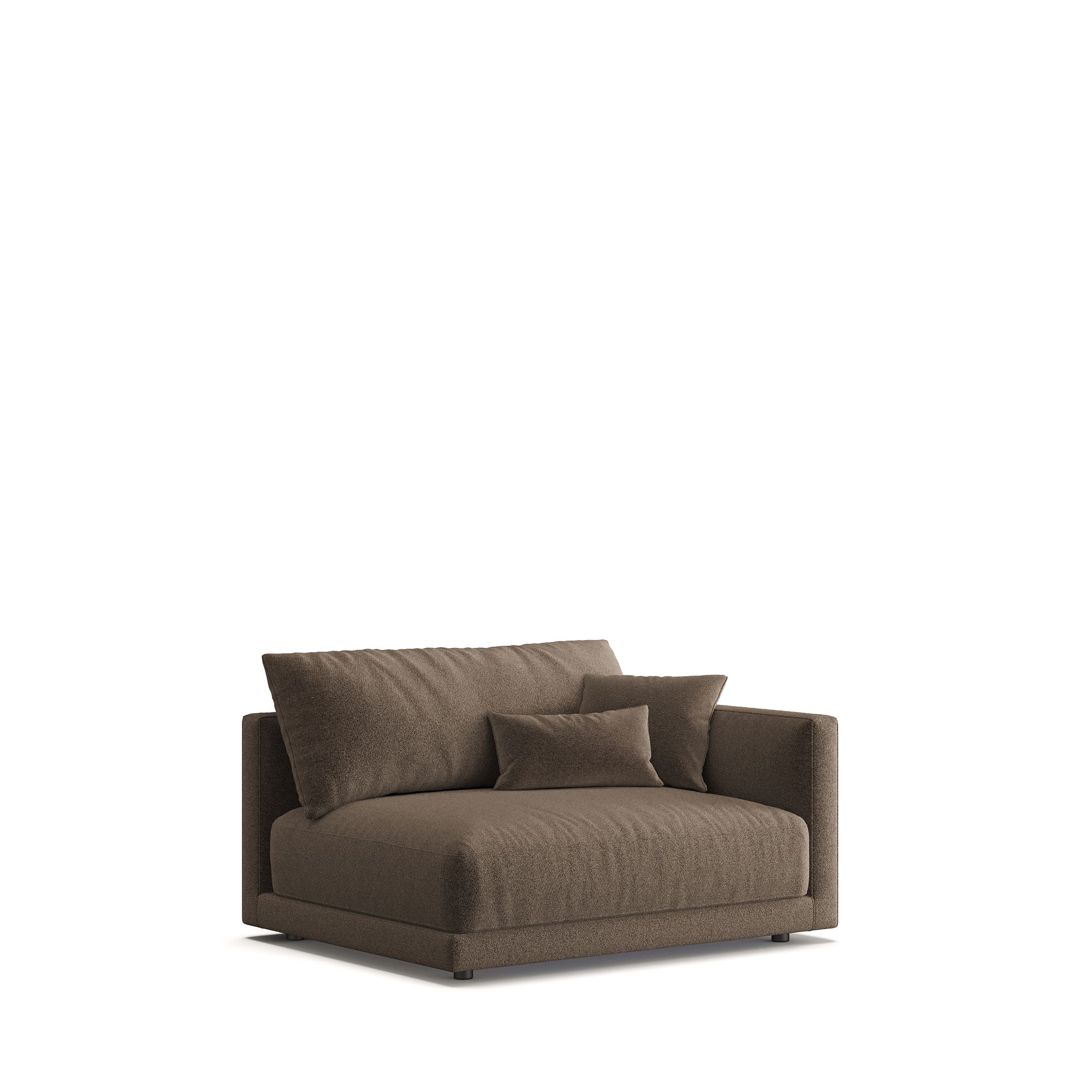 Диванный модуль SOLIN с правой боковиной выполнен в отделке практичной тканью «Рогожка». Мягкое сиденье создано на основе пены Memory Foam. Высокоэластичная пена обладает значительным запасом прочности и рассчитана на 15 лет интенсивной эксплуатации. Глубина сиденья и обволакивающие подушки создают ощущение мягкости и уюта, приглашая расслабиться. Элемент может использоваться и как в составе композиции, и как самостоятельный предмет мебели. Коллекция включает одно- и трехместные модули, а также оттоманки с правым и левым подлокотником, угловой модуль и подлокотники. Благодаря системе соединений «Крокодил» элементы легко сцепляются между собой, позволяя создать композицию необходимого размера и формы.