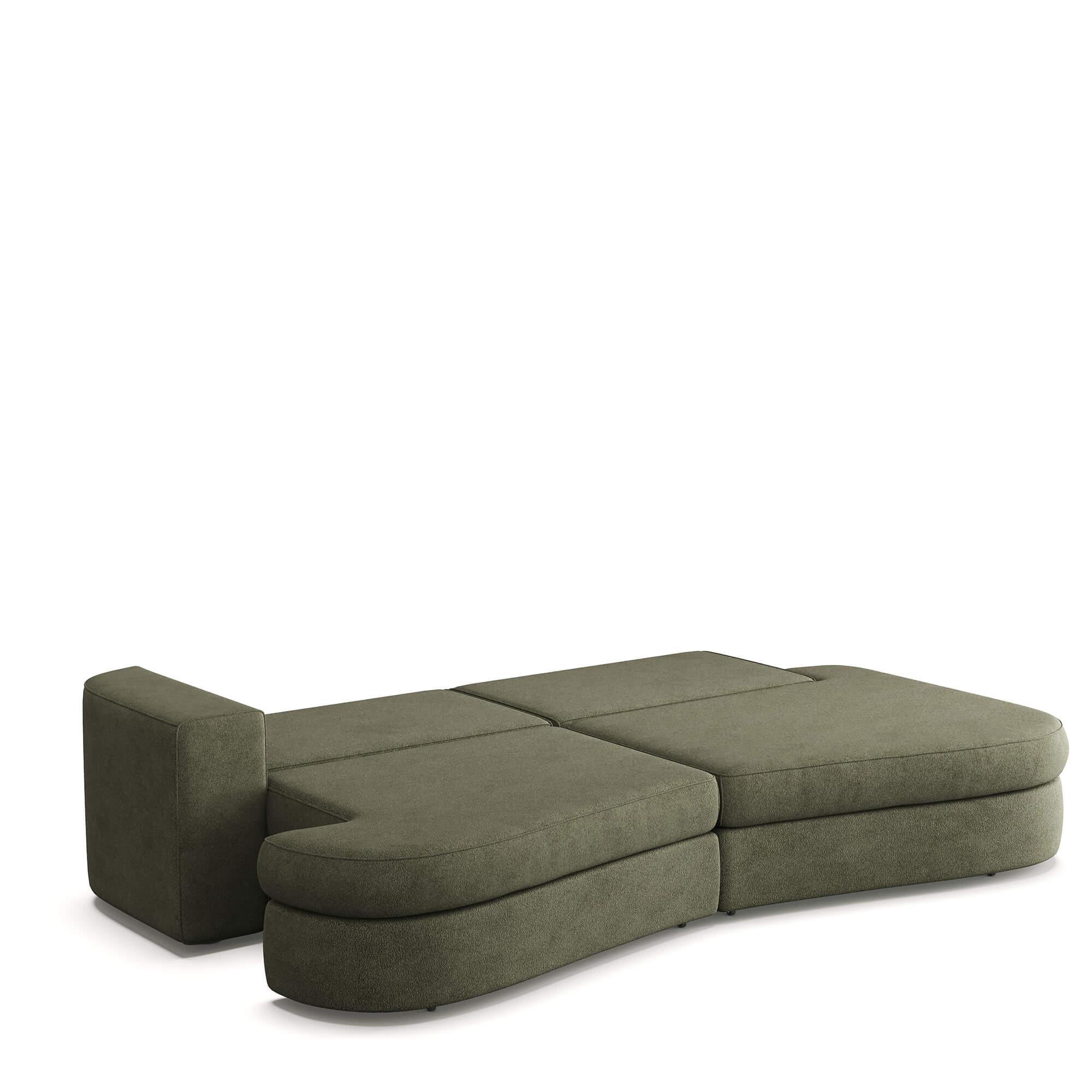 Сиденье приподнимается вверх и выкатывается вперед, после чего можно сложить спинку дивана и получить широкое спальное место с небольшим стыком между двумя частями по центру. Способ раскладывания исключает повреждение напольного покрытия даже при ежедневной трансформации дивана.