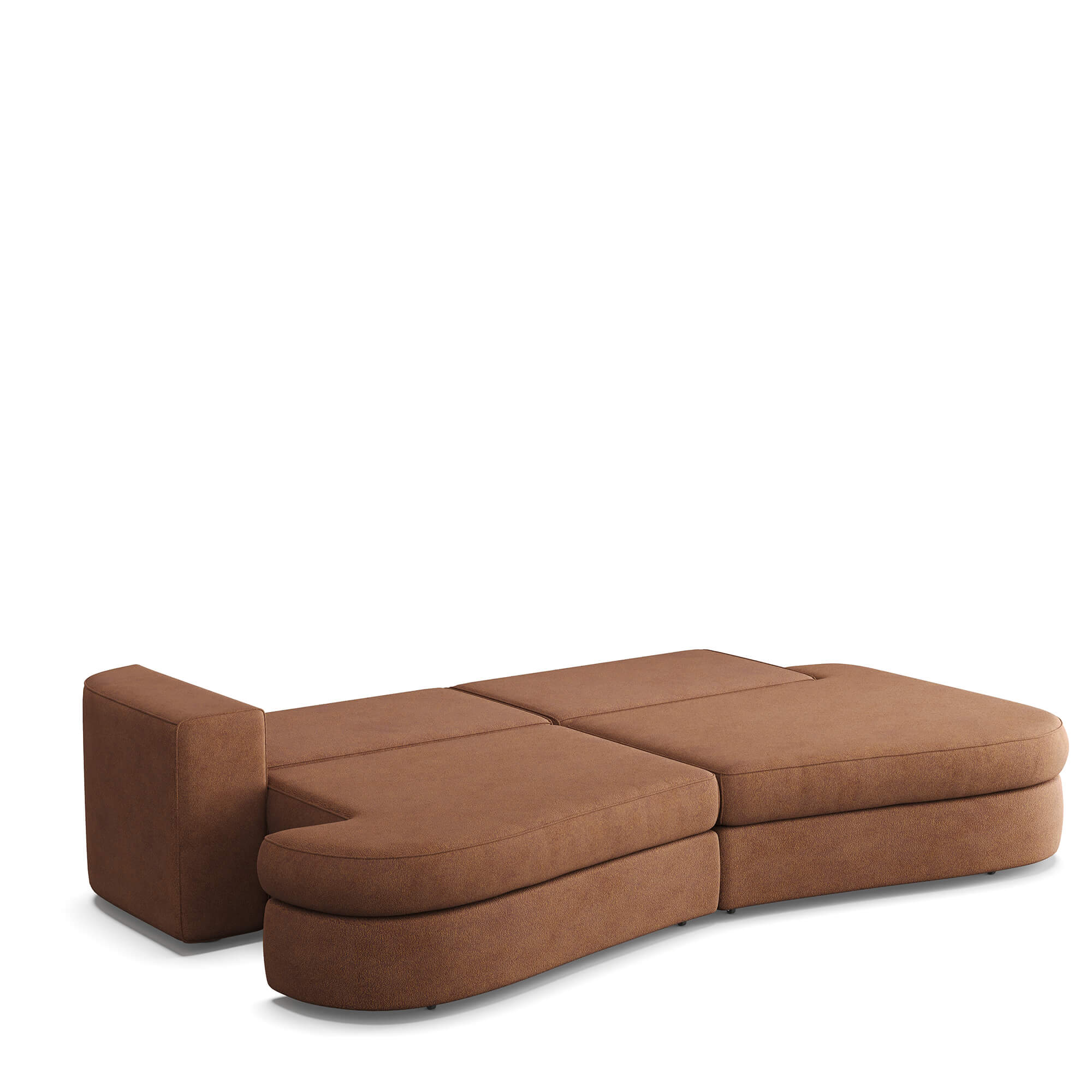 Сиденье приподнимается вверх и выкатывается вперед, после чего можно сложить спинку дивана и получить широкое спальное место с небольшим стыком между двумя частями по центру. Способ раскладывания исключает повреждение напольного покрытия даже при ежедневной трансформации дивана.
