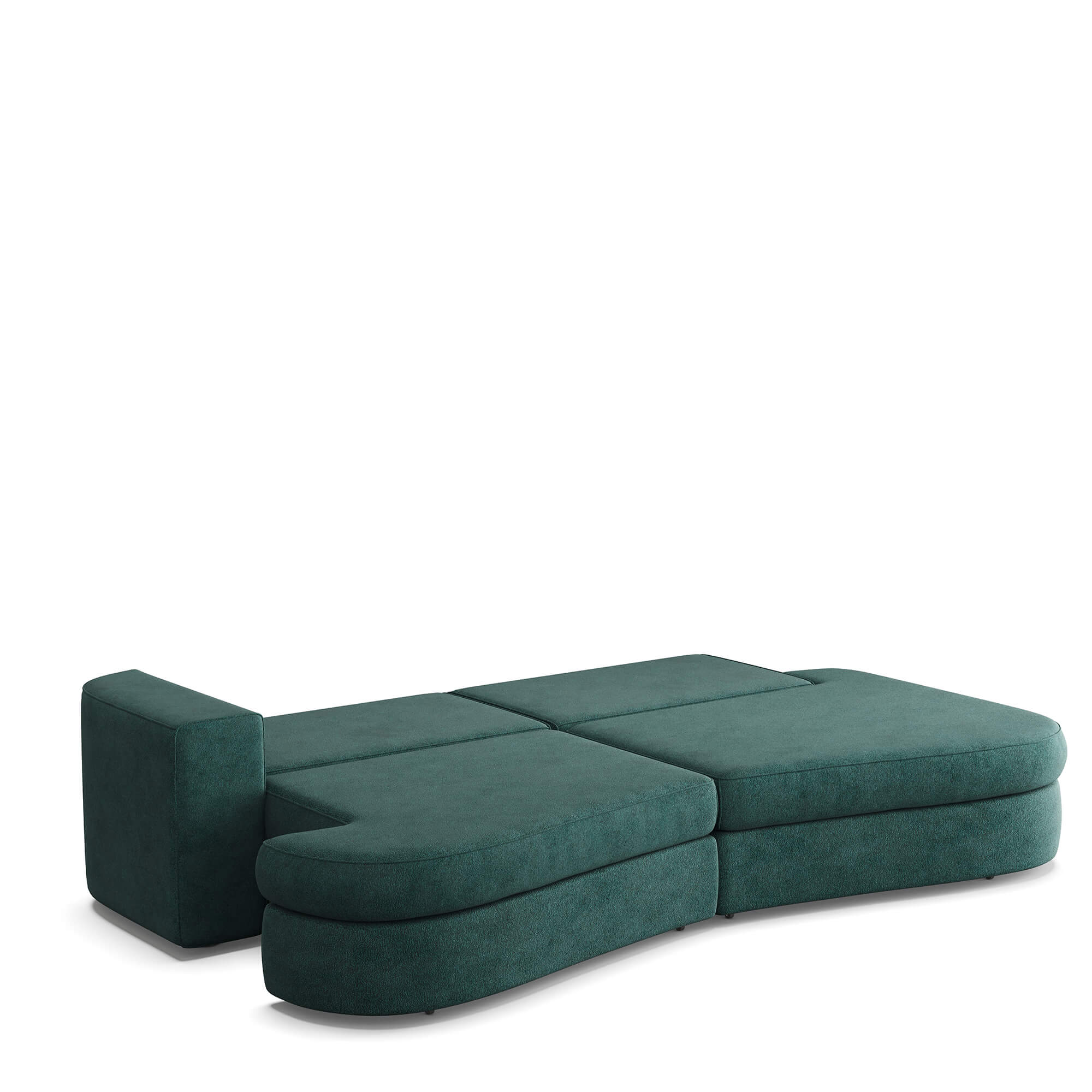 Сиденье приподнимается вверх и выкатывается вперед, после чего можно сложить спинку дивана и получить широкое спальное место с небольшим стыком между двумя частями по центру. Способ раскладывания исключает повреждение напольного покрытия даже при ежедневной трансформации дивана.
