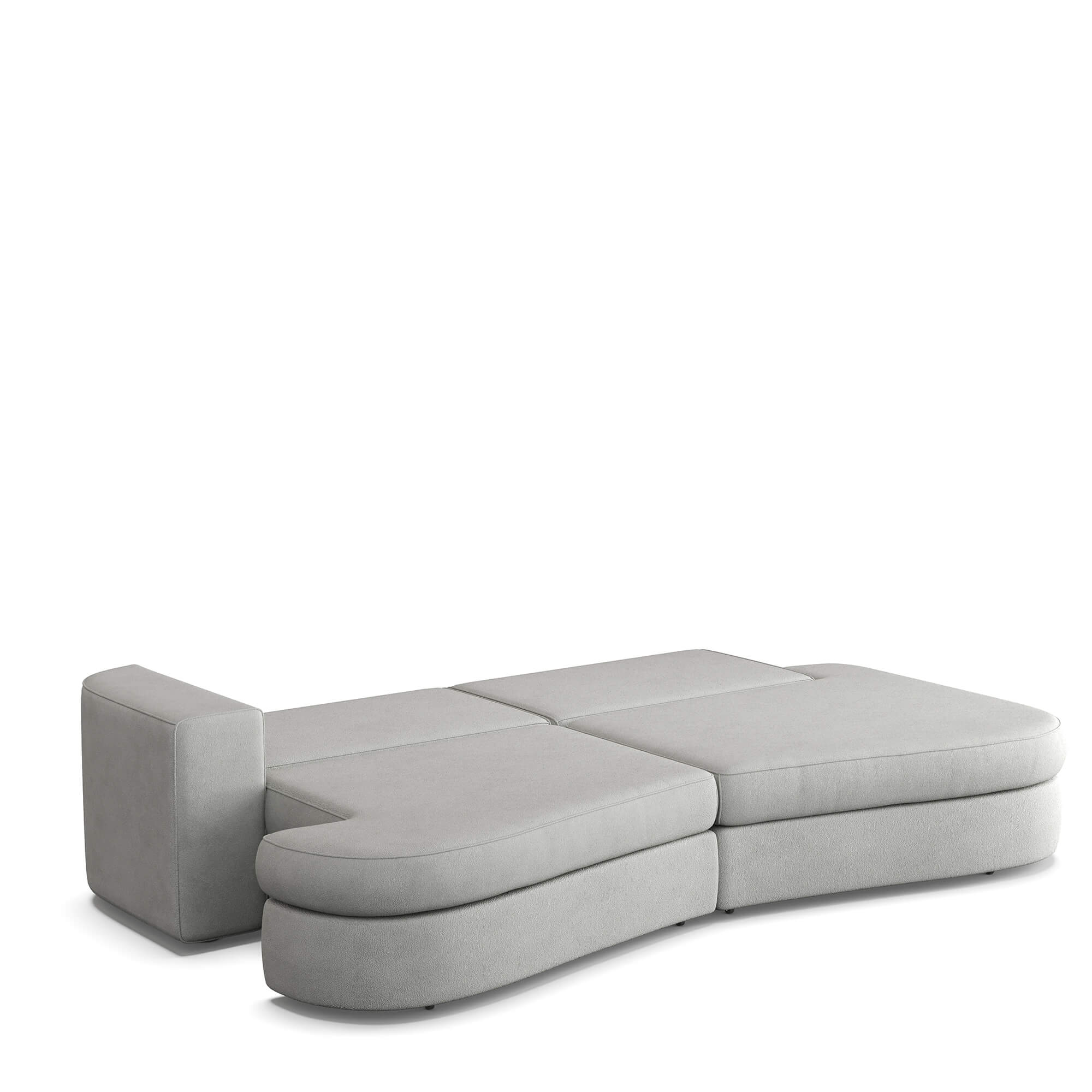 Сиденье приподнимается вверх и выкатывается вперед, после чего можно сложить спинку дивана и получить широкое спальное место с небольшим стыком между двумя частями по центру. Способ раскладывания исключает повреждение напольного покрытия даже при ежедневной трансформации дивана.